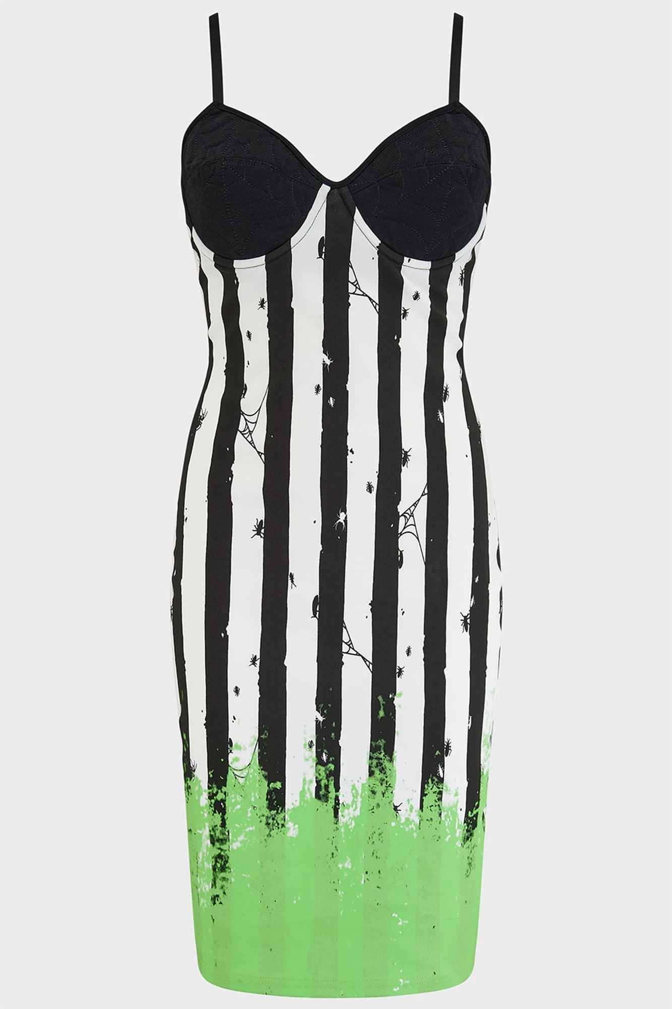 Channel your inner bio-exorcist with the official Beetlejuice x KILLSTAR Distressed Stripe Bodycon Dress. This striking collaboration merges the iconic aesthetic of the Netherworld with premium alternative fashion, offering a silhouette that is as bold as it is flattering. Perfect for those who want to make a statement, this dress brings cinematic gothic style directly to your wardrobe.