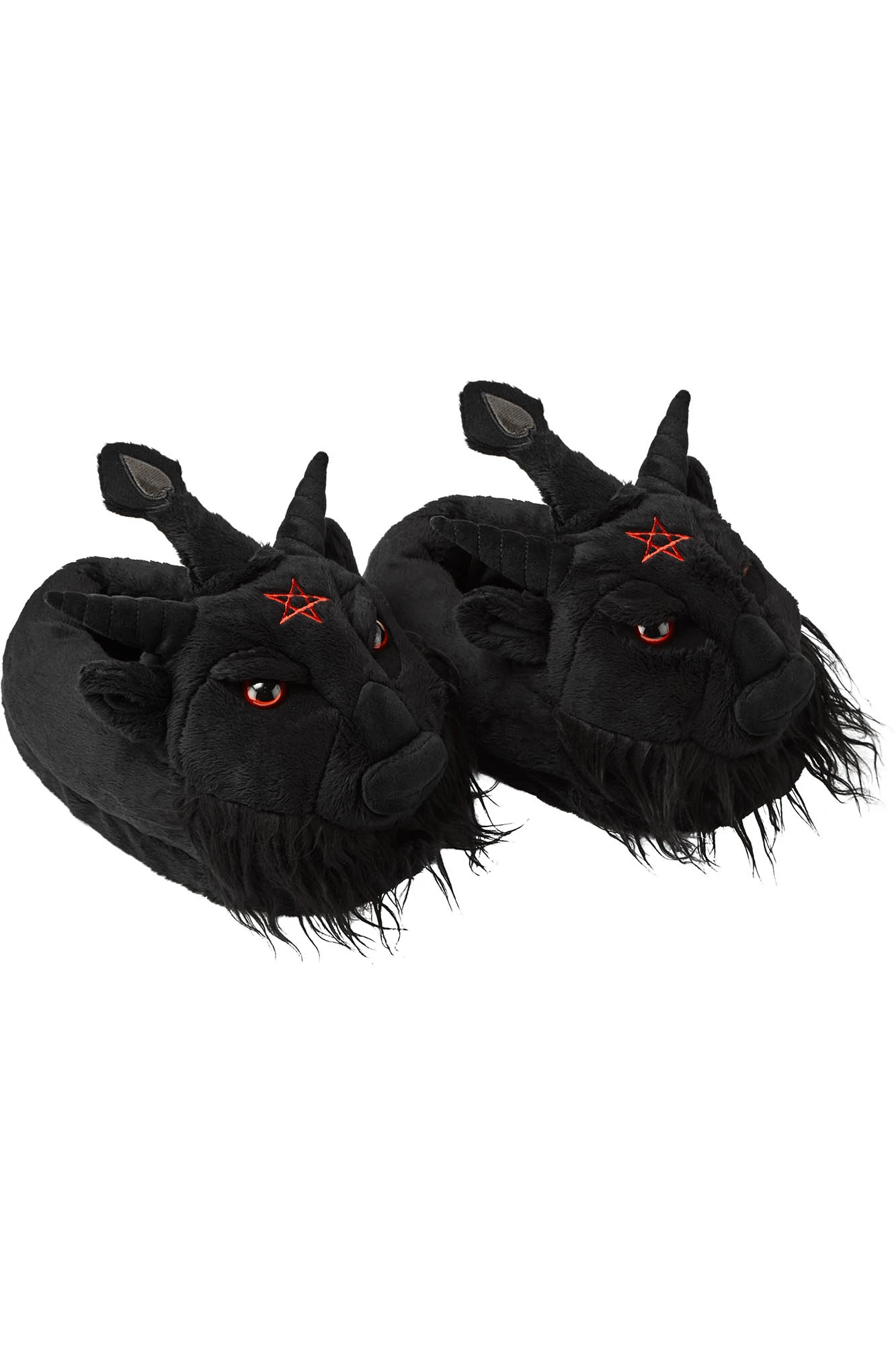 Feel the chill of hell freezing over? Keep yer paws cozy with our ‘Dark Lord’ Baphomet slippers. In a soft fleece material, closed foot styling with a goat-head statement to the front, 3D ears + horns, embroidered pentagram, and fur detailing. Purrfect for when you need to take some time to relax and chill with yer demons.Â