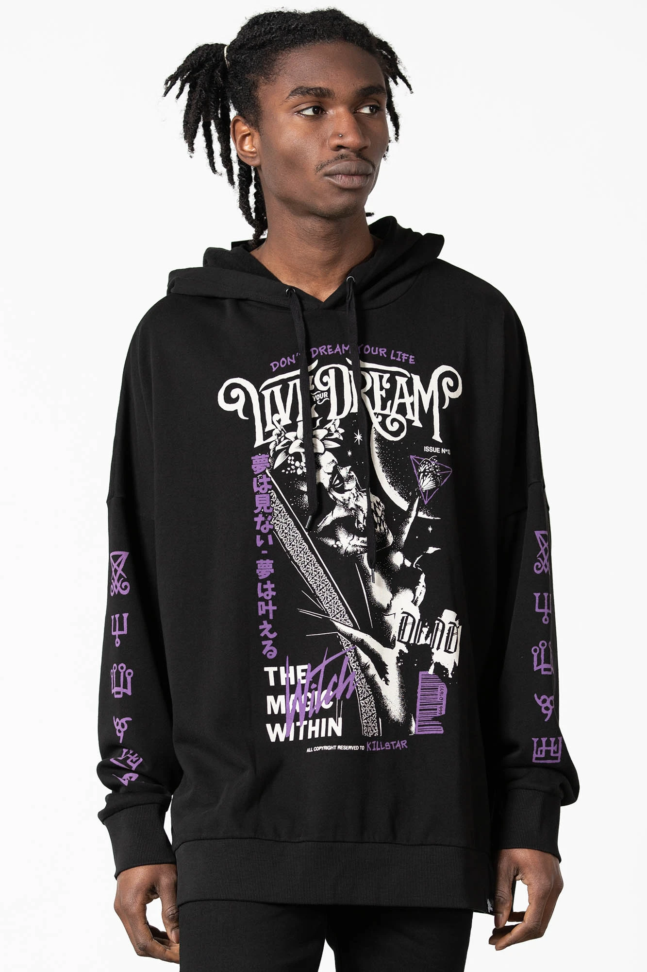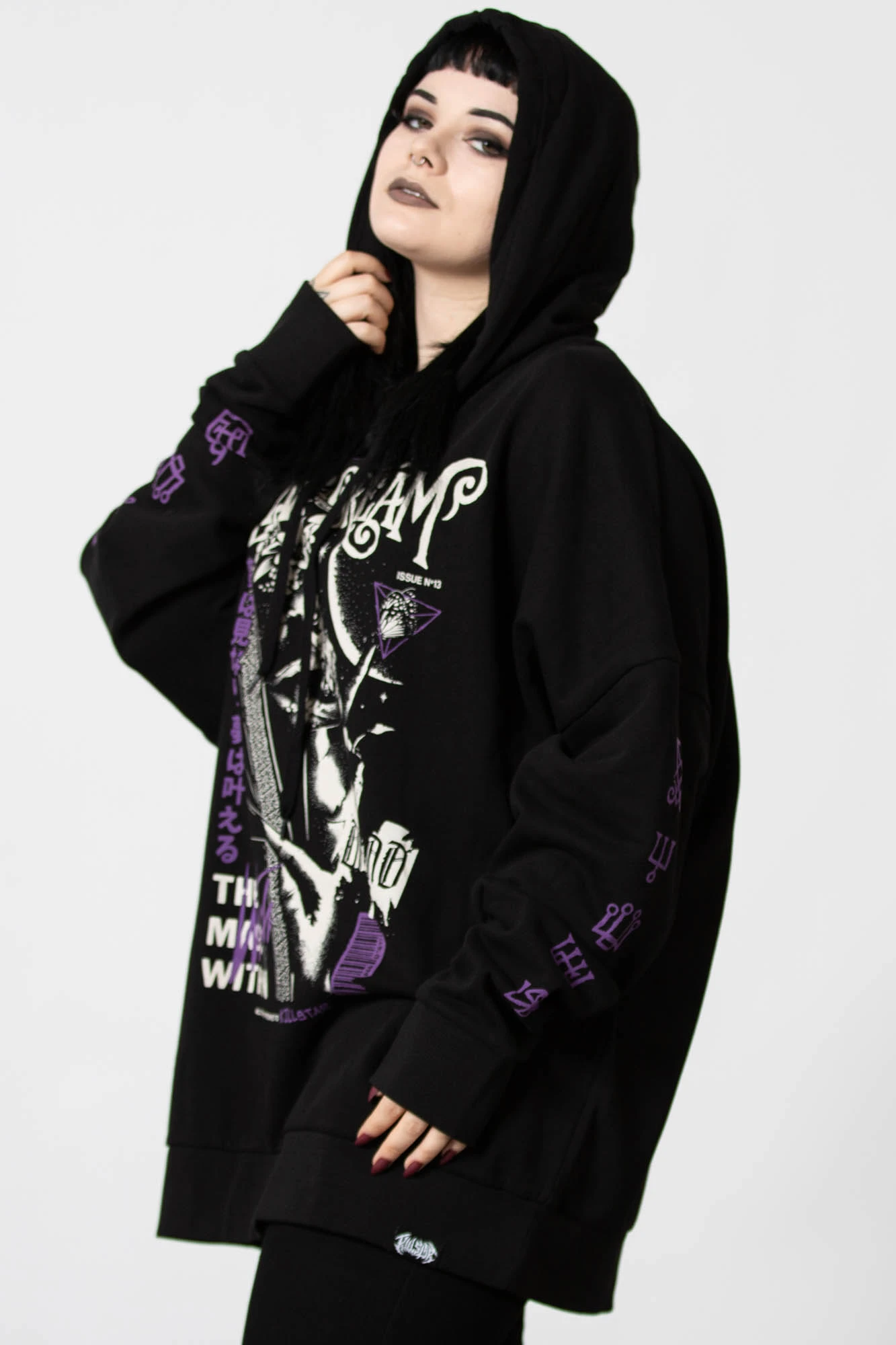 Classic pull-over hoodie with statement graphic to the chest and sleeves, drop shoulders, oversized hood, and long sleeves. Smooth cotton jersey so its perfect for day-to-day wear.