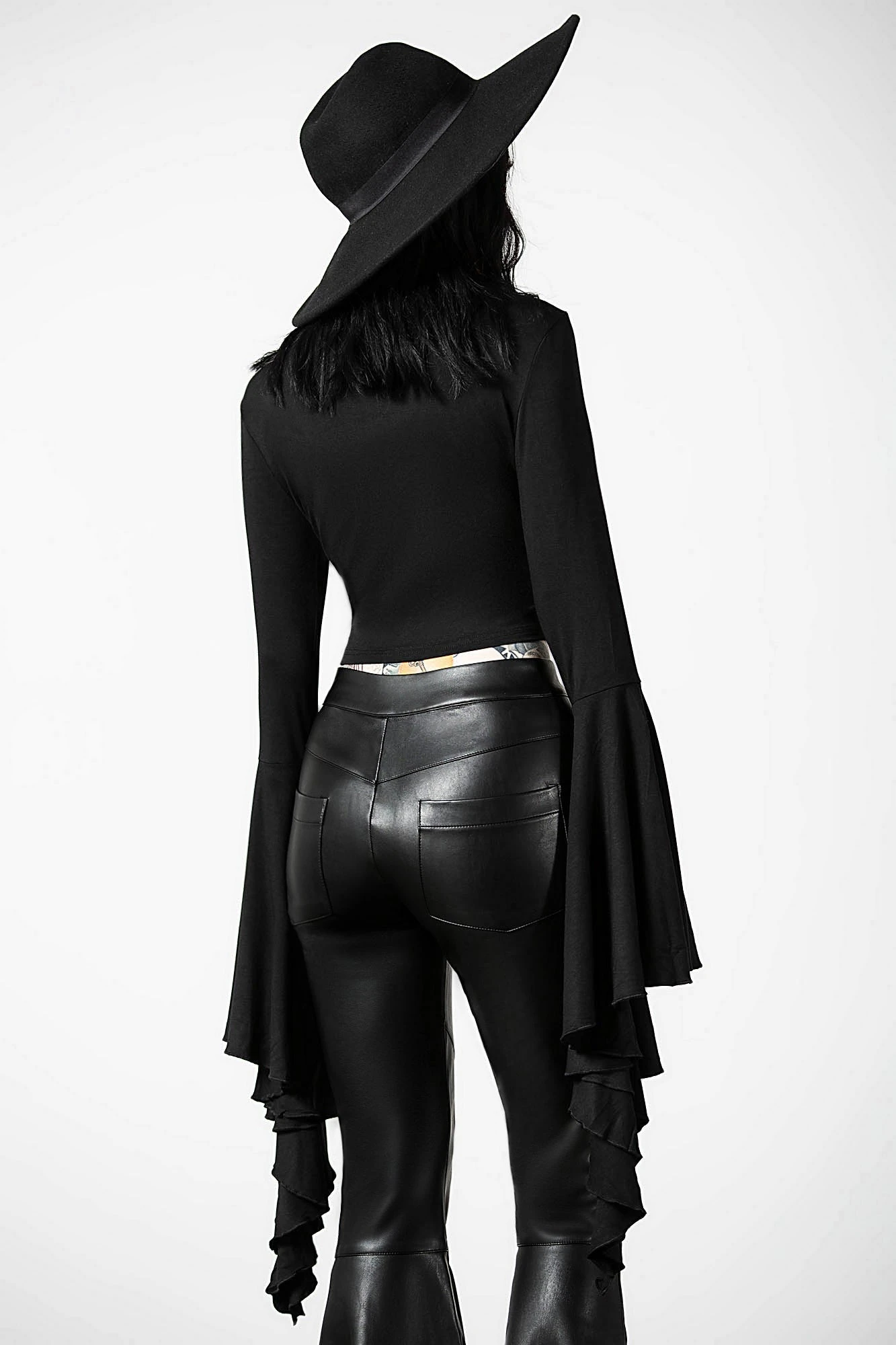 Face your fears in our ‘Elemental Eclipse’ Crop top. Crafted in soft, stretch fabric for a killer fit, with dramatic XL waterfall sleeves and finished with a high neck and Mercury glyph mesh cut out. Perfect to wear out watching the stars or for a casual card reading.