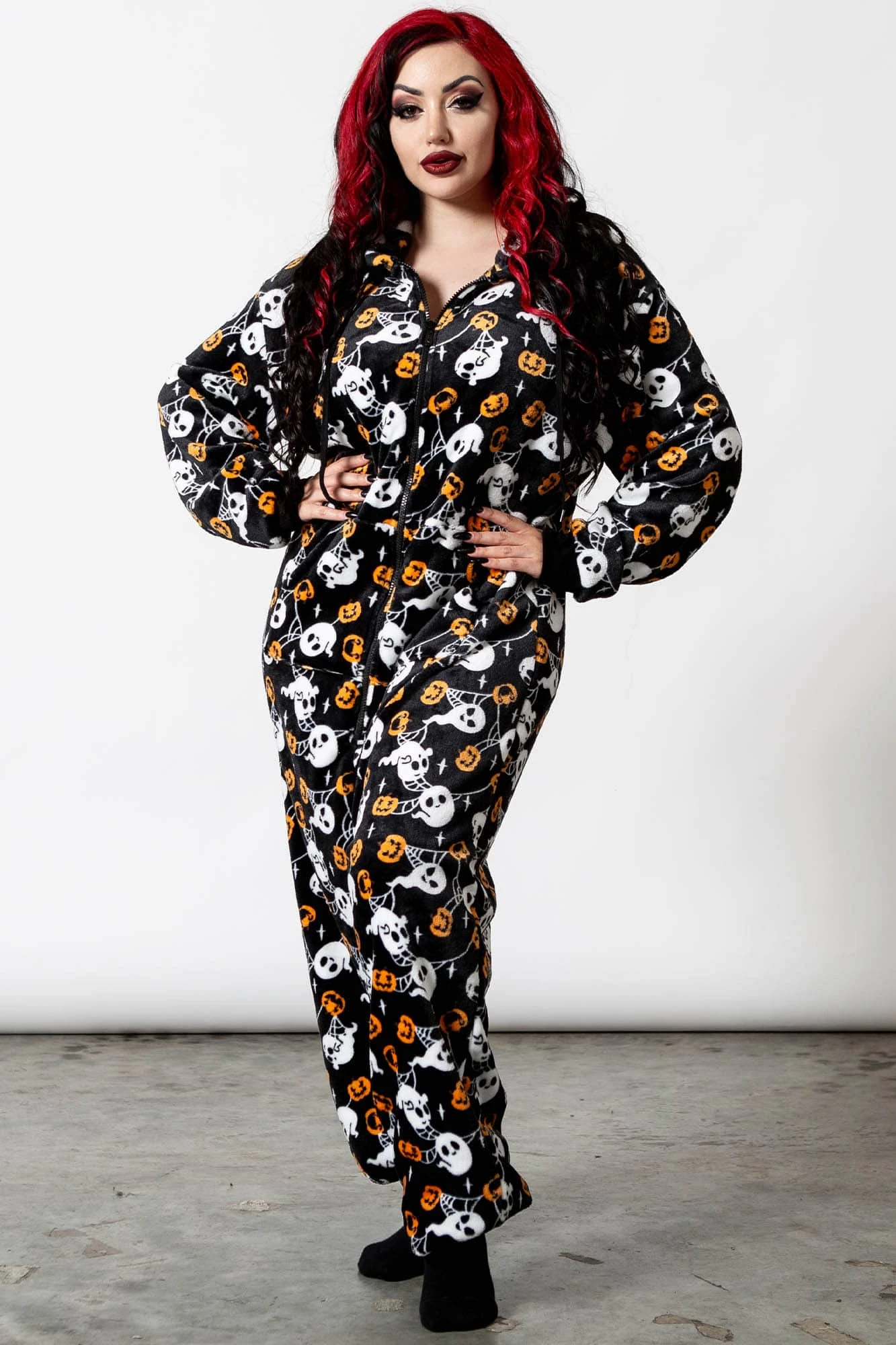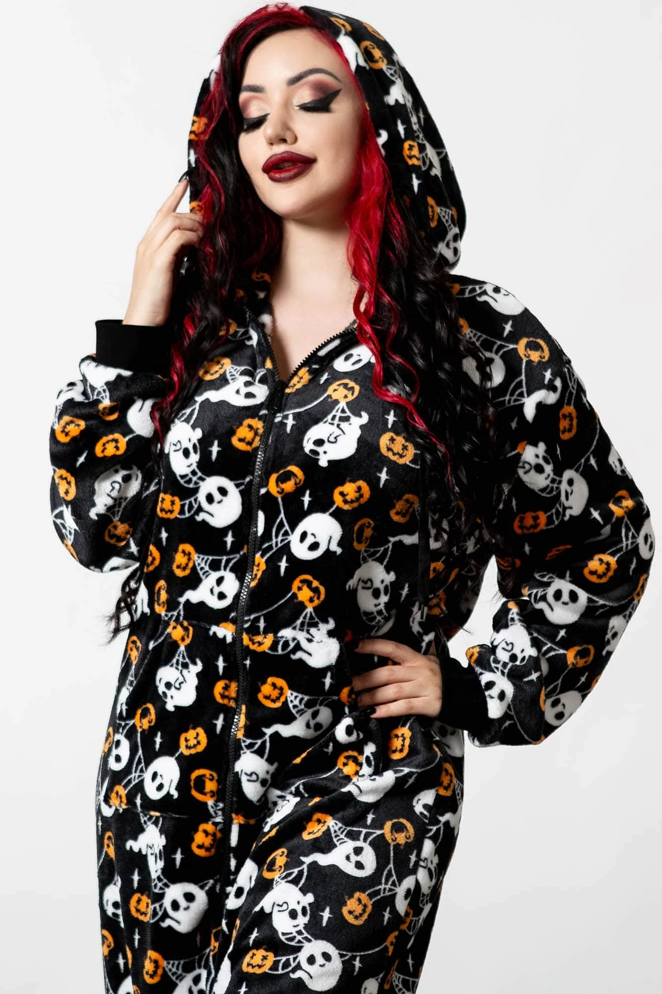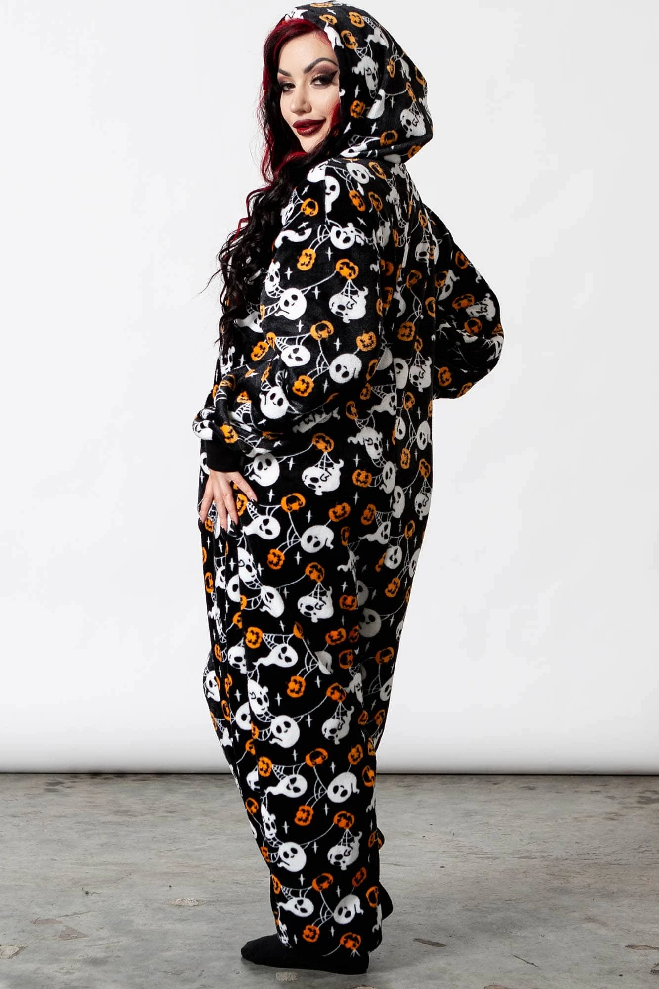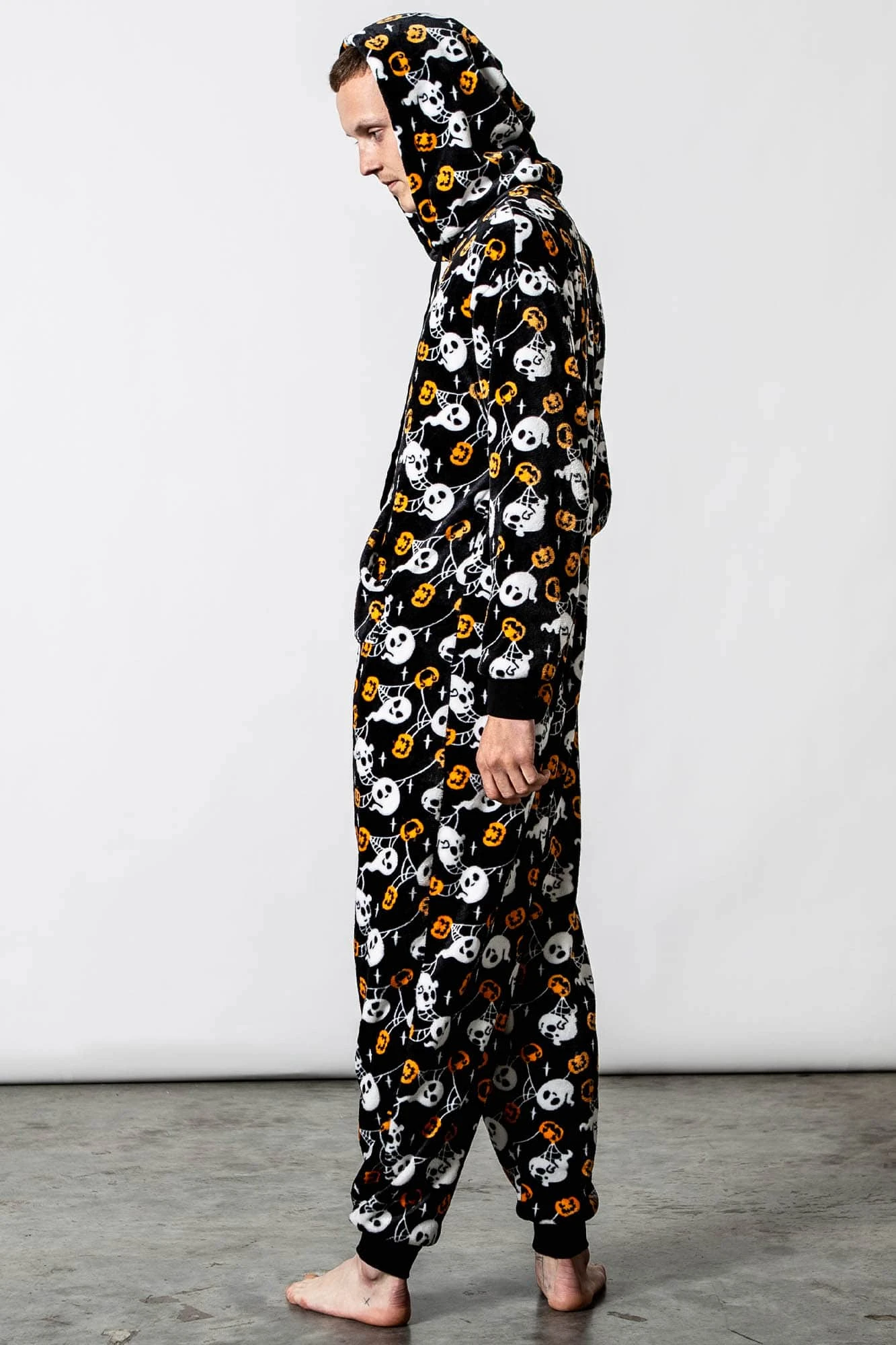 Is the cold weather bringing u down? Are you looking for the right gear for your Netflix & snacks? U just fancy some fun? Our cold-days onesie is a total must-have; totally unisex spooky design – super soft fabric with bold repeat graphic print, large hood with drawstring and contrast cuffs. Zip-down front so it’s easy to get on and off.