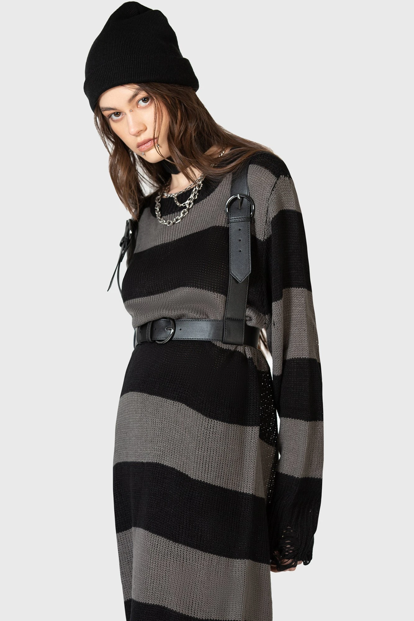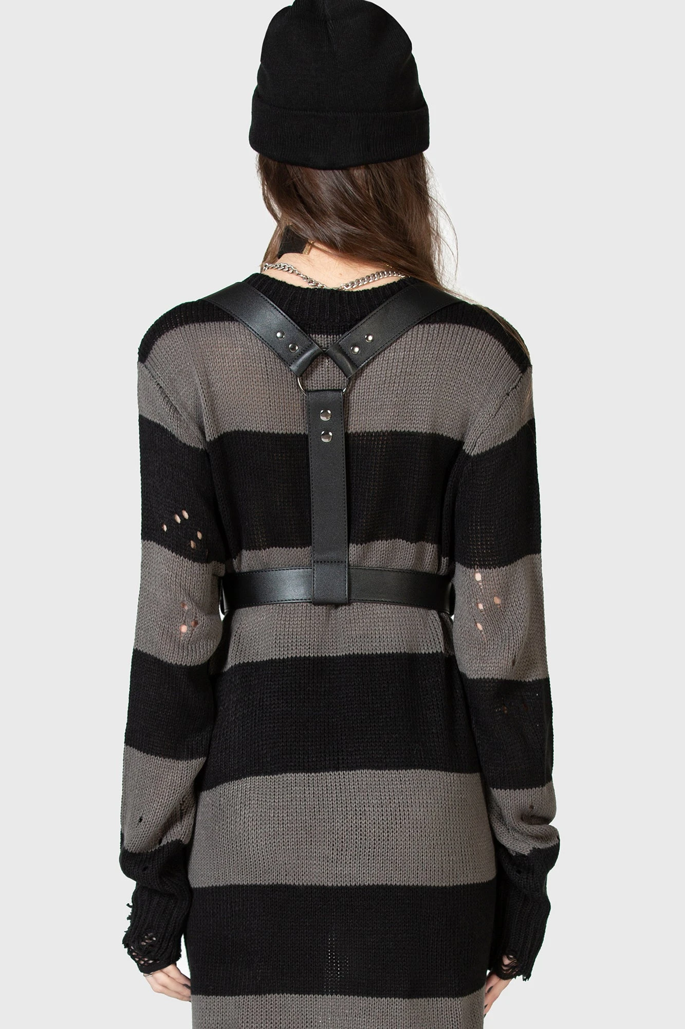 Transform your look with the KIHILIST Desolate Spirit Harness, a definitive statement piece designed for those who embrace an alternative edge. This intricately crafted harness combines gothic sophistication with modern utility, providing a bold silhouette that instantly elevates any outfit from basic to breathtaking.