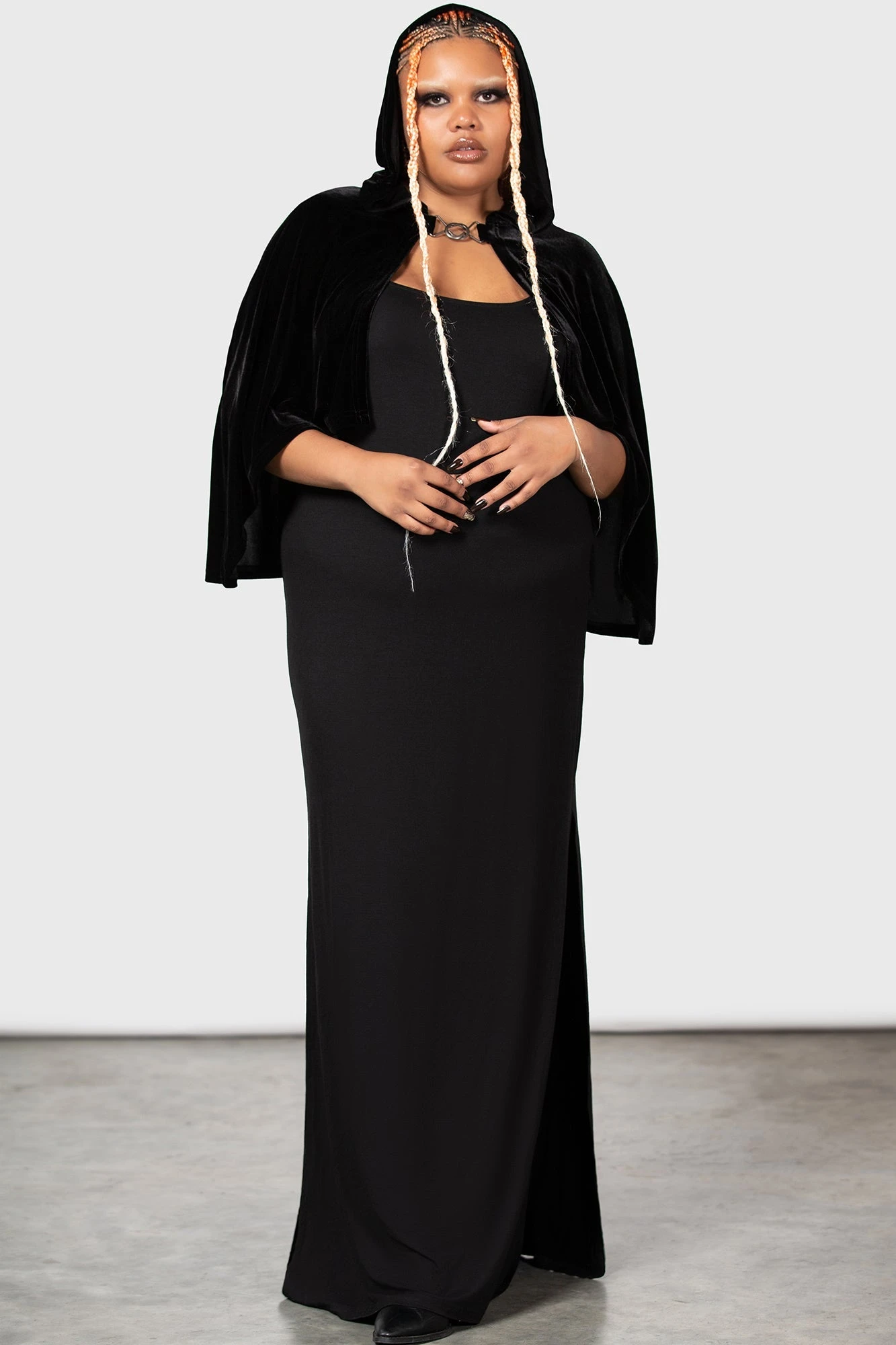 Command attention and embrace the night in the signature Killstar Caylley Cloak [Plus]. Designed for those who live for dramatic silhouettes, this statement piece blends high-quality stretch velour with iconic gothic details. Whether you are layering for a ritual or making an entrance at your next event, this cloak offers the perfect balance of comfort and alternative style.