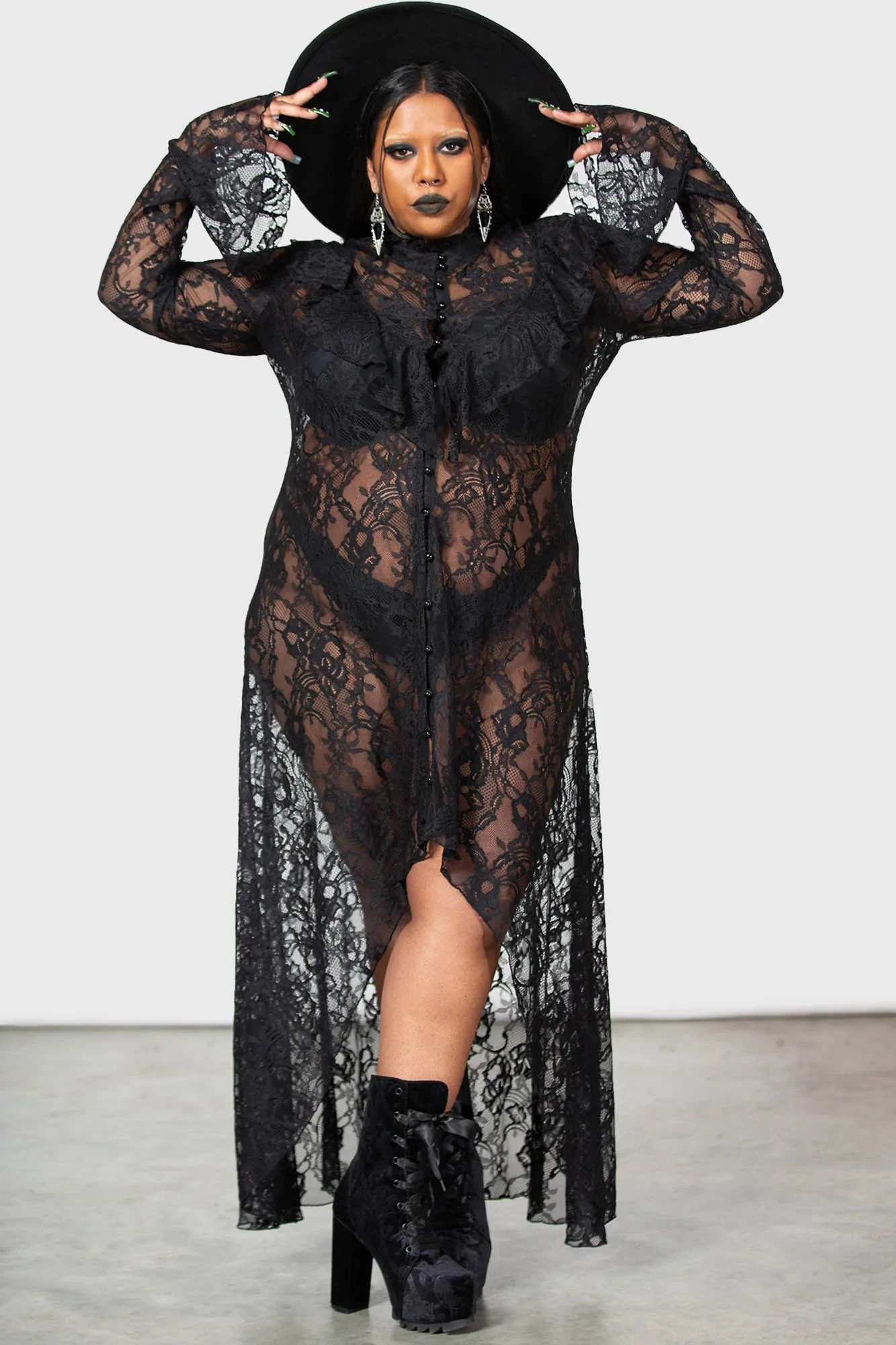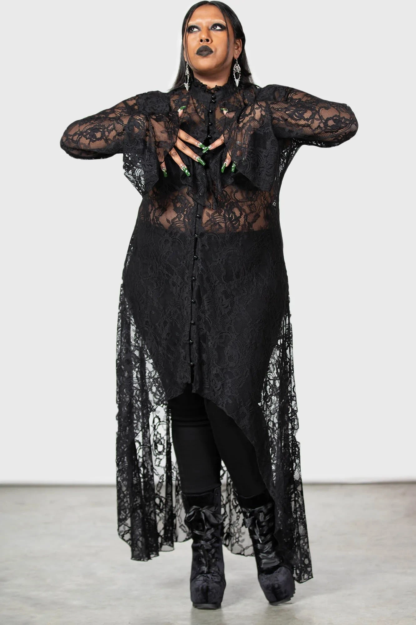 Step into the shadows with the Condolences Maxi Shirt Dress, a signature piece from the KILLSTAR collection designed for those who command a room with dark sophistication. This dress blends Victorian-inspired detailing with a modern alternative silhouette, making it an essential addition to any gothic wardrobe.