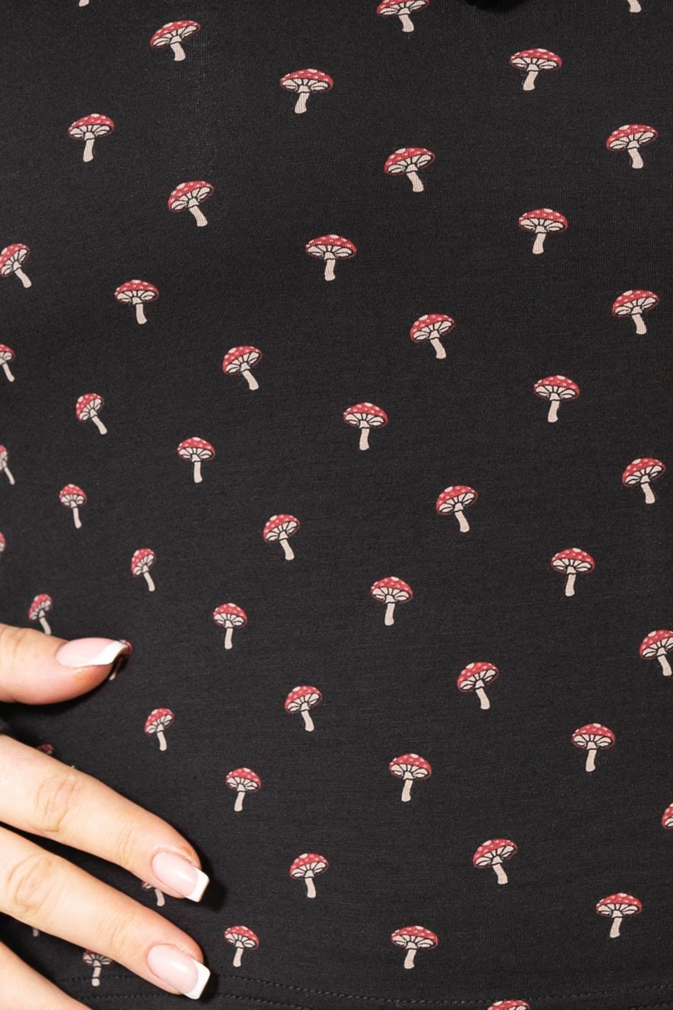 - Signature Mushroom Print: Featuring a bold, all-over statement pattern that captures a unique gothic-faircore vibe.
