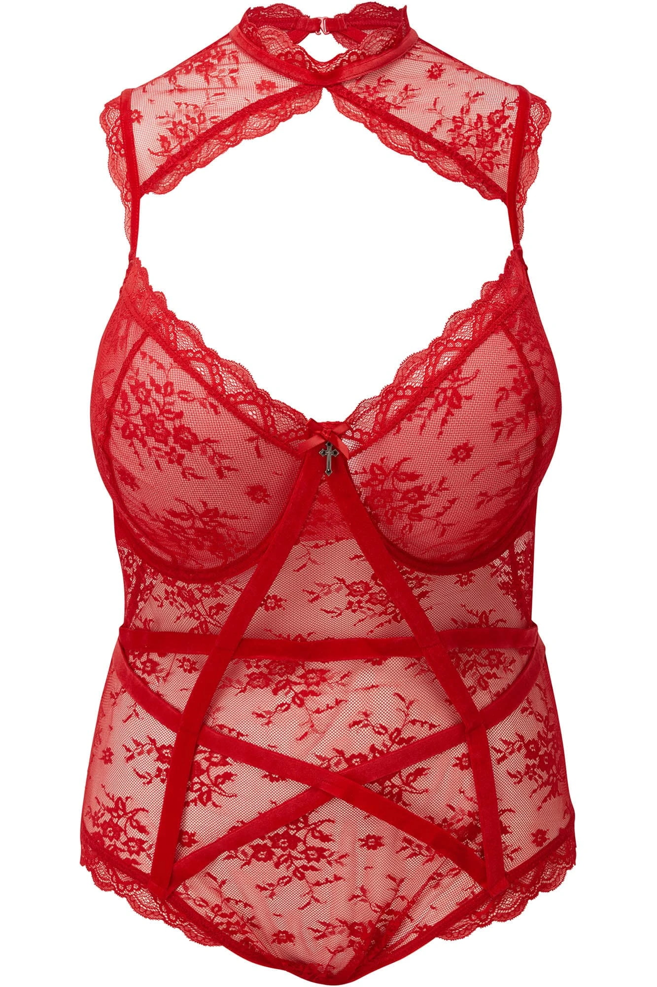 Command attention and embrace the arcane with the KILLSTAR Dark Desire Lace Bodysuit in a striking Scarlet hue. Designed for those who walk between the shadows and the light, this plus-size masterpiece combines luxurious soft-touch lace with iconic occult imagery to create a look that is as powerful as it is seductive.