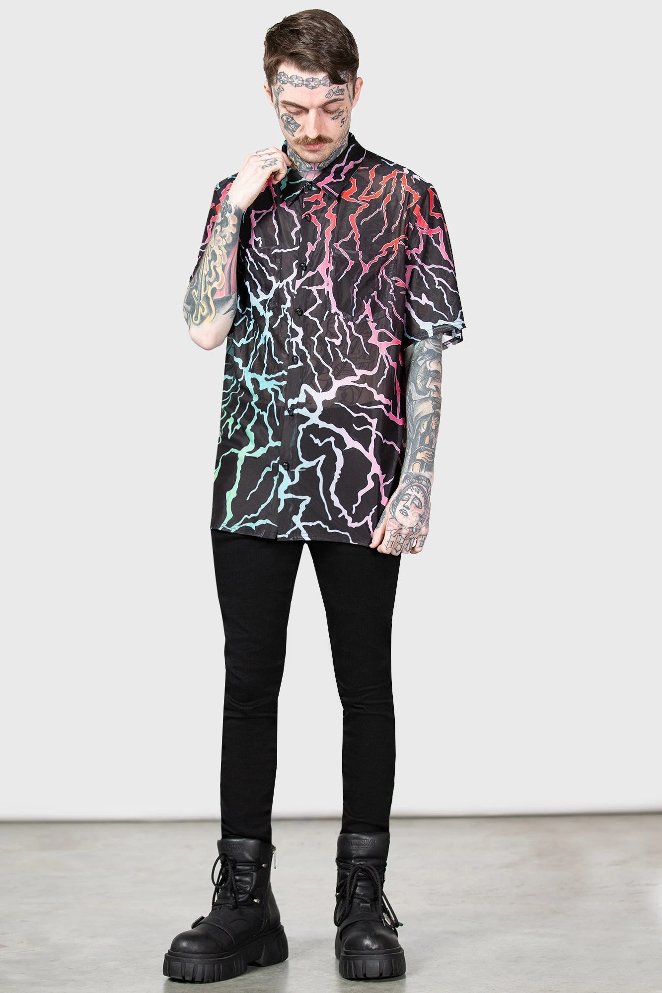 Step into the light with the KILLSTAR Dawn Light Shirt, a standout piece from our latest collection. This shirt combines alternative edge with vibrant energy, featuring a striking rainbow lightning motif that demands attention wherever you go. Whether you are hitting a festival or layering for a bold street-style look, this piece delivers maximum impact.