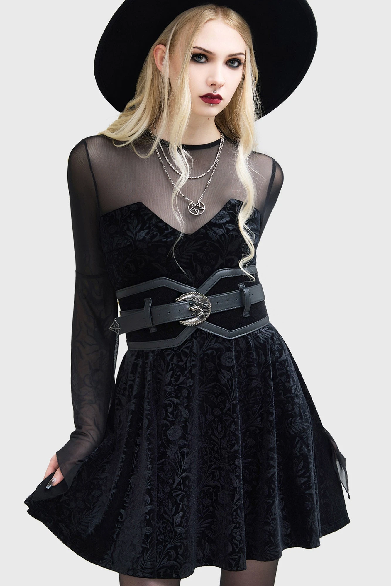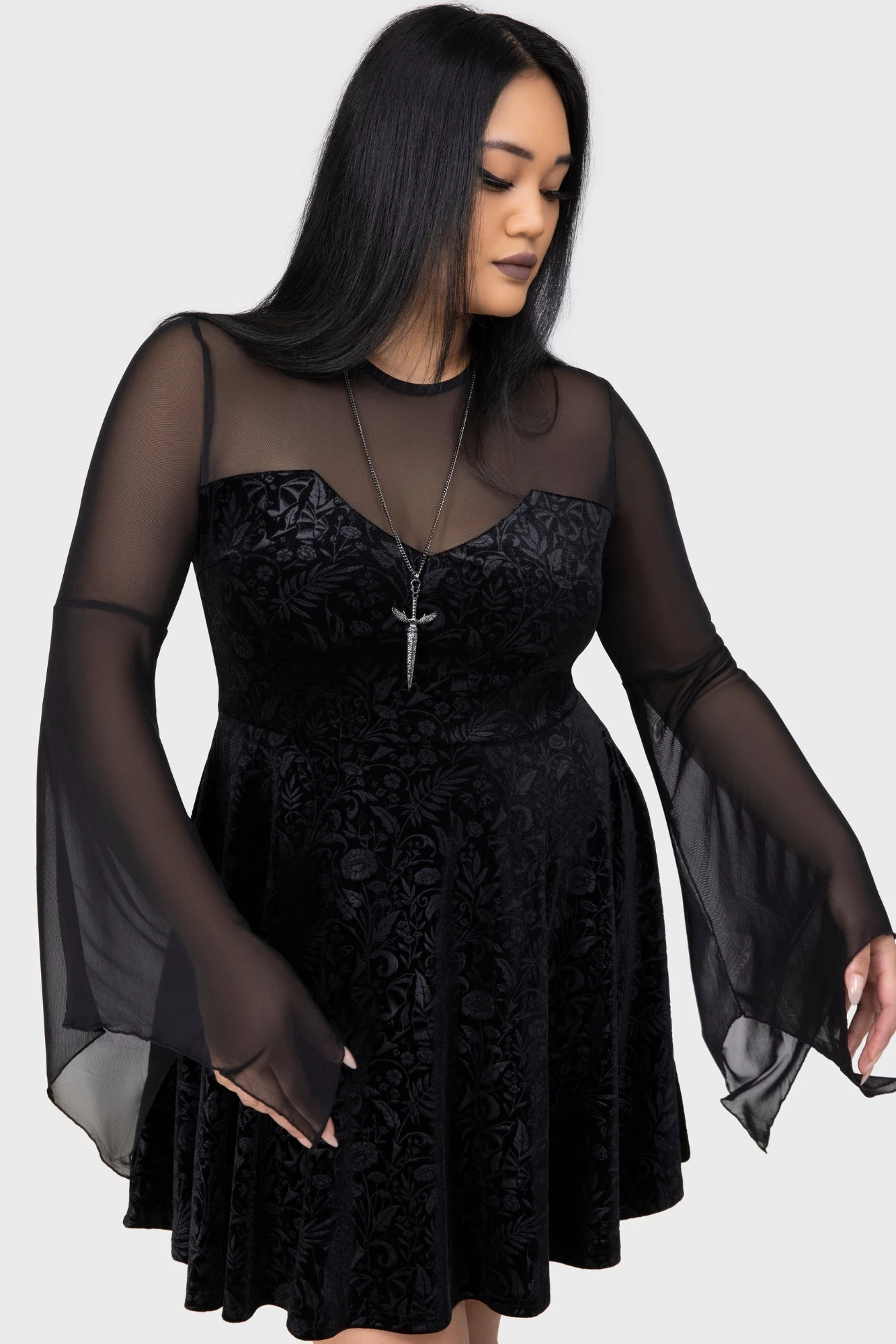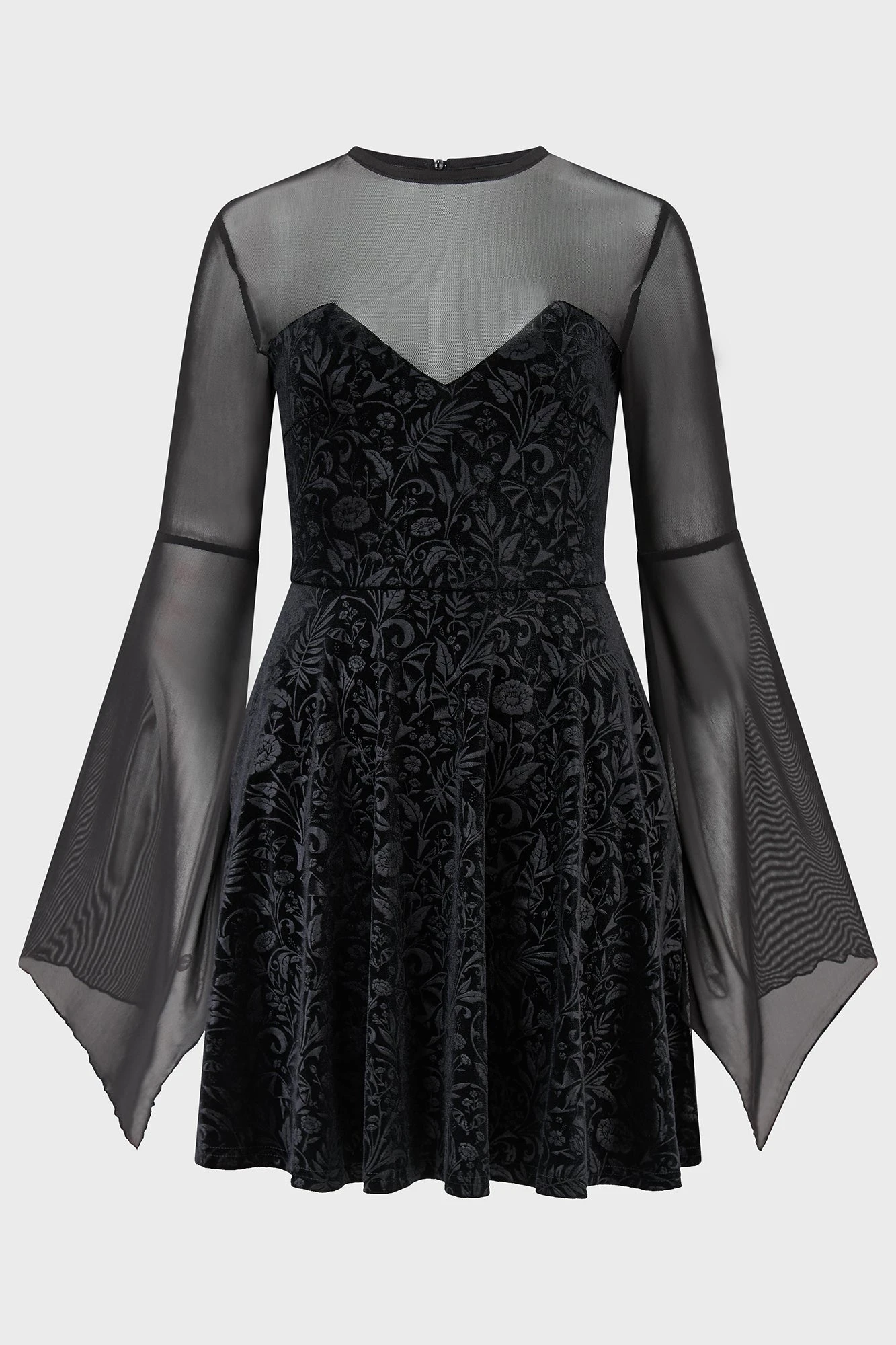 - Dramatic Mesh Details: Features ethereal mesh flared sleeves and delicate mesh inserts at the front and back for a touch of gothic mystery.