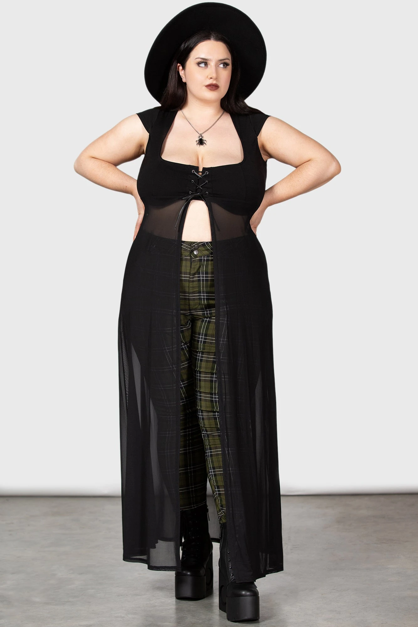 - Style: Gothic Duster / Mesh Overlay / Lace-Up Front.