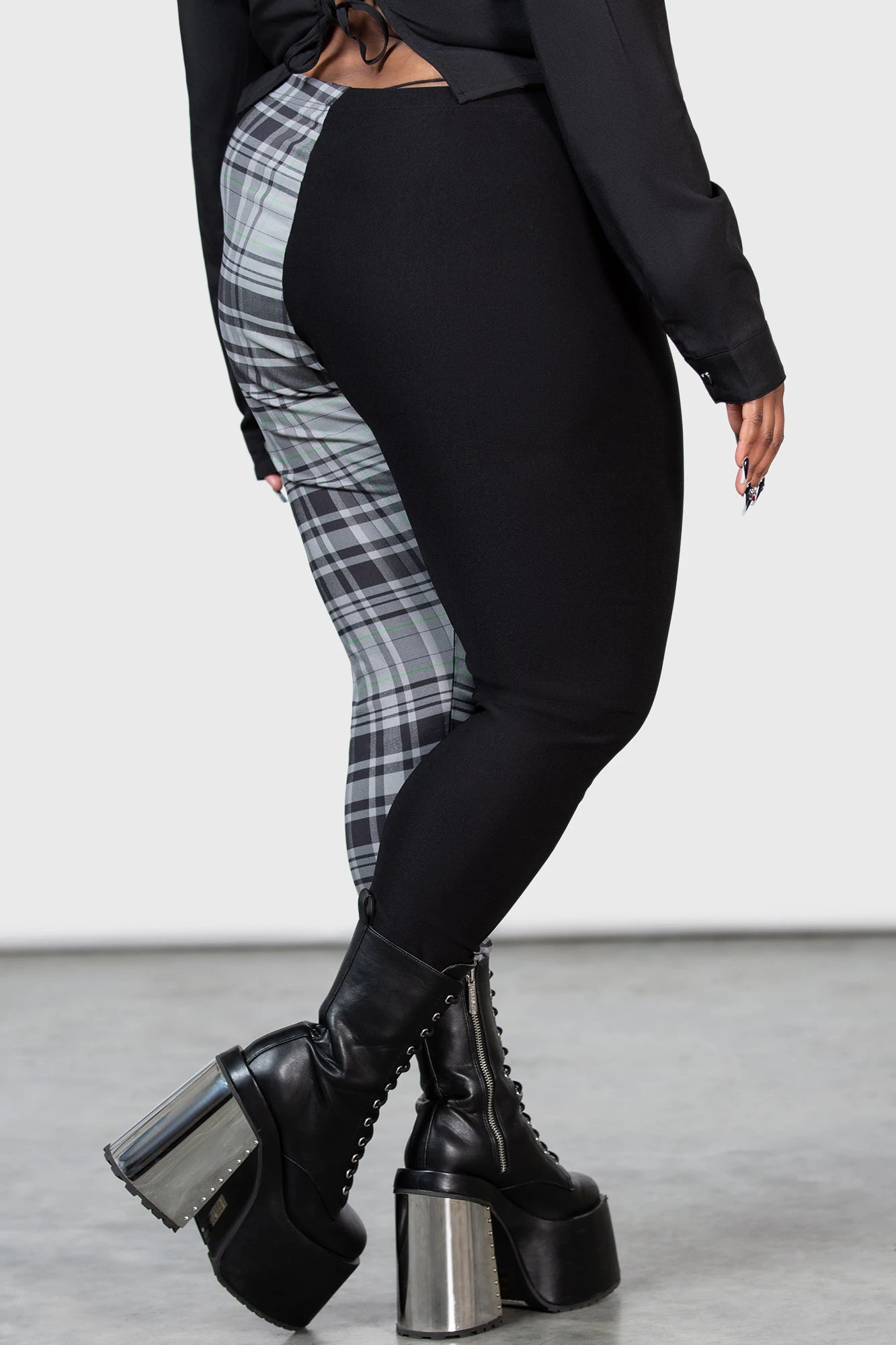 Make a bold statement with the KILLSTAR Heartbreaker Leggings, specifically designed for our plus-size collection. These leggings blend alternative aesthetics with everyday comfort, featuring a unique grey tartan pattern accented by subtle hints of green. Whether you are layering them for a gothic ensemble or making them the centerpiece of your look, these leggings offer the perfect mix of attitude and wearability.