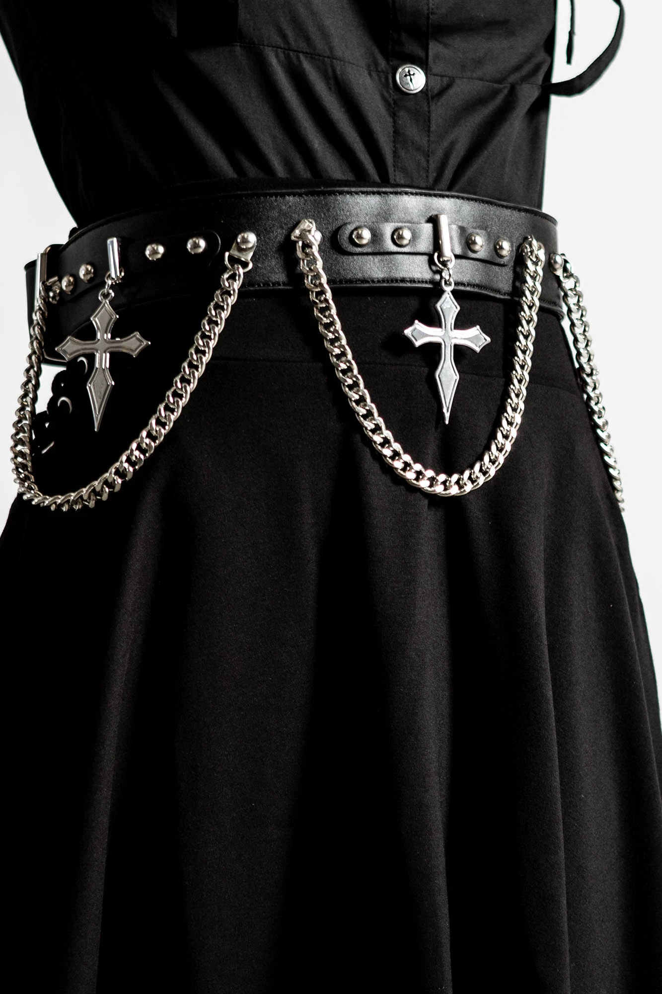 - Signature Gothic Accents: Features hanging silver chain details and symbolic cross charms for an authentic alternative vibe.