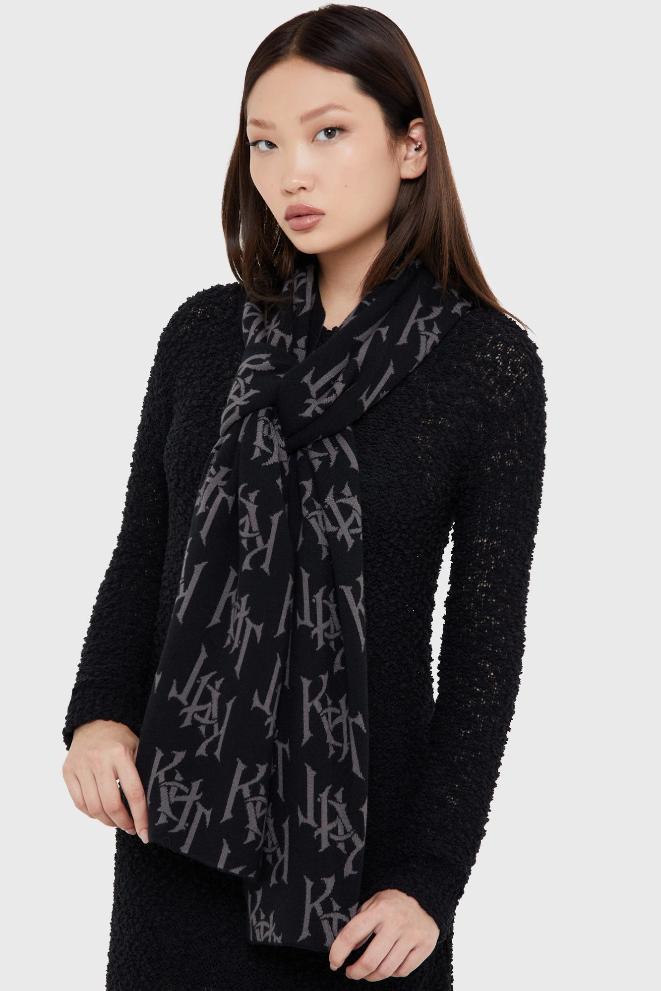 - Style: Soft Knitted Graphic Scarf