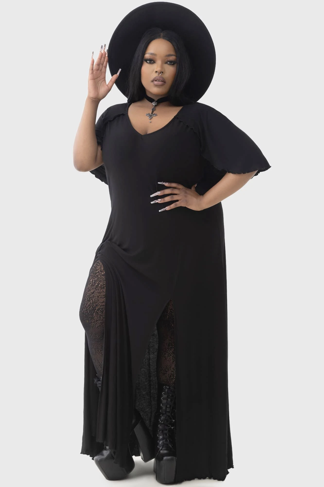 - Double Side Slits: Offers a daring touch of skin and allows for effortless movement and dramatic flair.