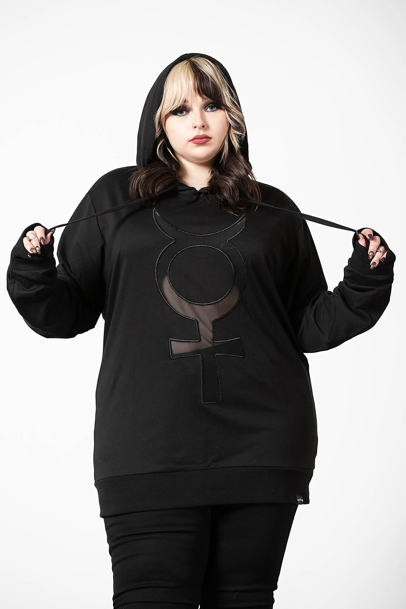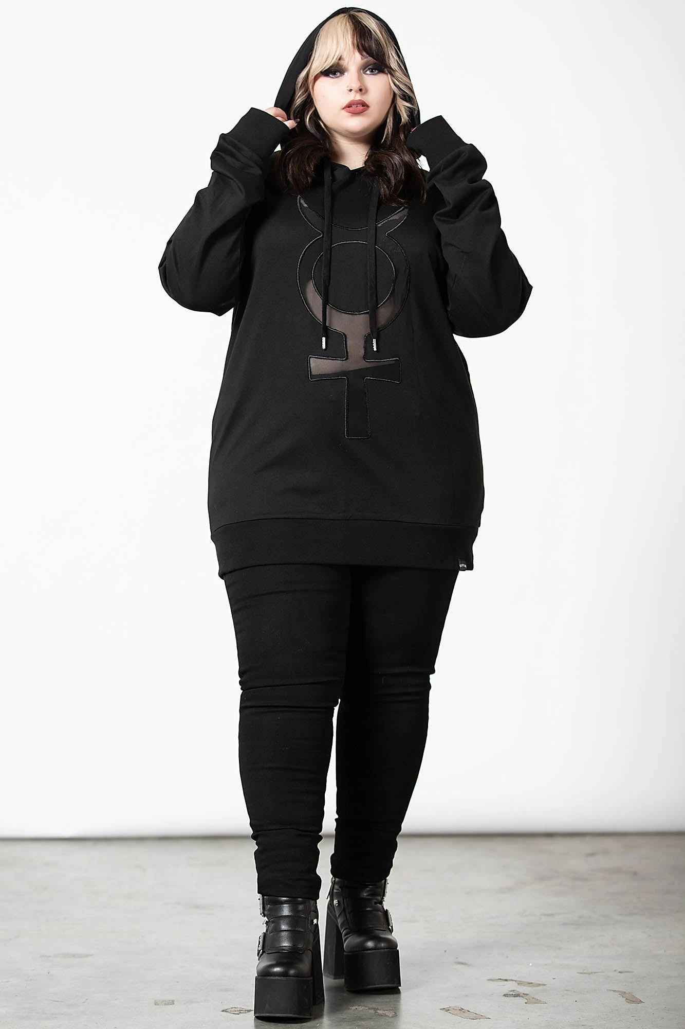 Elevate your dark aesthetic with the KILLSTAR Mercury Rising Pull-Over Hoodie. This isn’t just another basic layer; it’s a statement piece designed for those who let their star sign lead the way. Crafted from premium, super-soft stretch cotton, this longline hoodie combines gothic charm with everyday comfort, featuring a striking mesh cutout that sets it apart from the rest of the coven.