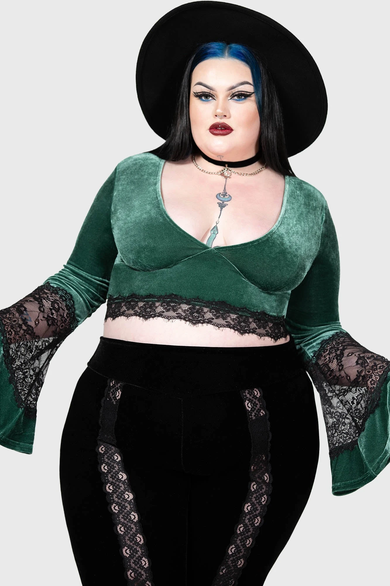 Step into the shadows with the KILLSTAR Naomi top, a masterpiece of alternative elegance designed specifically for the modern enchantress. Crafted from sumptuously soft stretch velvet in a deep forest green, this top combines gothic allure with ultimate comfort. Whether you’re attending a moonlit gathering or simply elevating your everyday style, the Naomi top offers a silhouette that is as bold as it is beautiful.