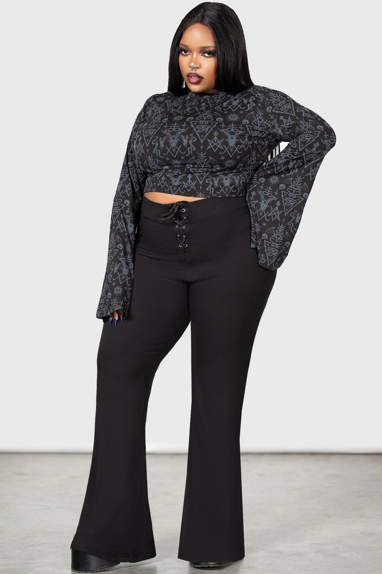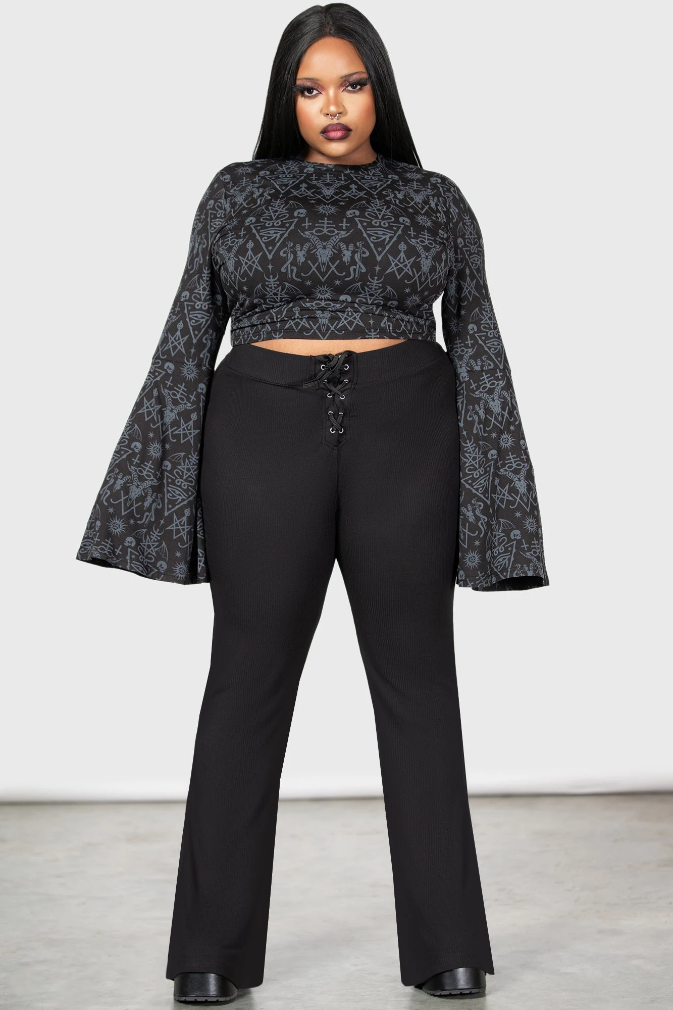 Step into the shadows with the KILLSTAR Nightmagick Plus Size Top, a statement piece designed for those who live for alternative aesthetics. This fitted crop top combines a bold, all-over occult-inspired print with a dramatic silhouette, ensuring you stand out whether you’re at a concert or a moonlit gathering. Crafted from premium soft-stretch fabric, it offers a flattering fit that moves with you while maintaining its striking shape.