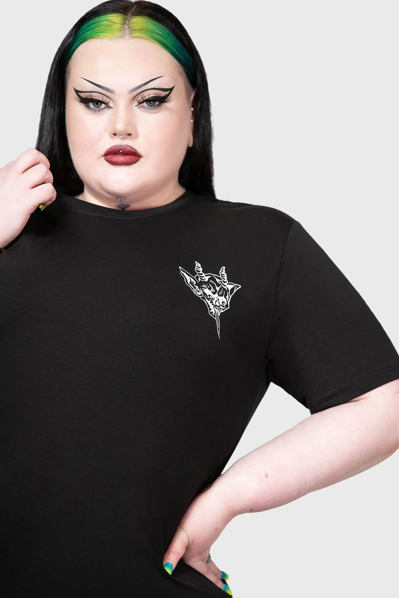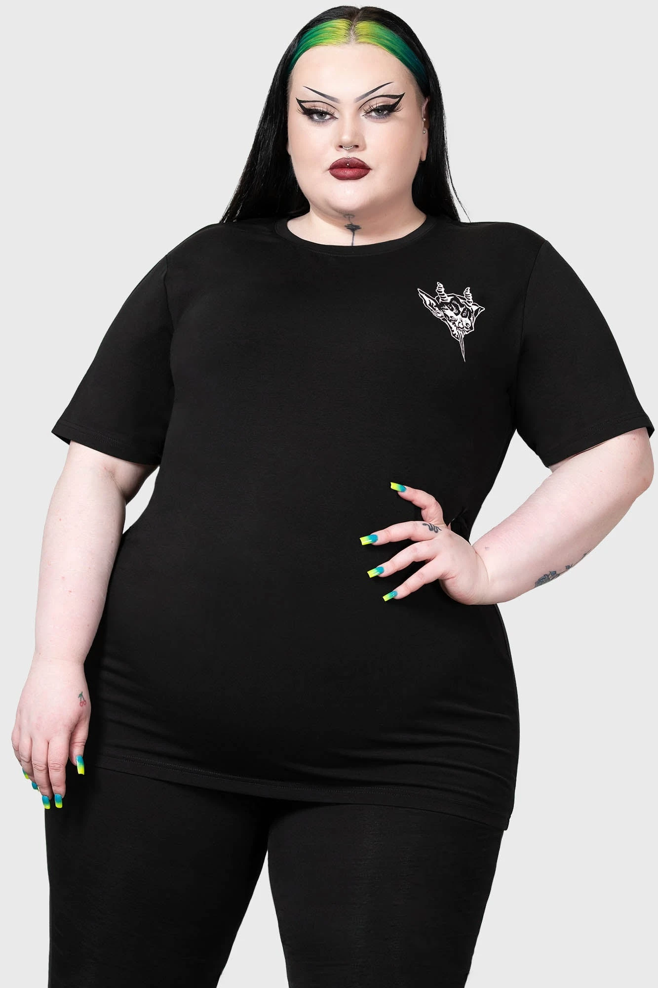 Make a bold statement with the Killstar Rayn In Hell T-Shirt from our plus-size collection. Designed for those who live life on the edge, this tee blends iconic alternative aesthetics with everyday comfort, ensuring you stand out in every crowd.