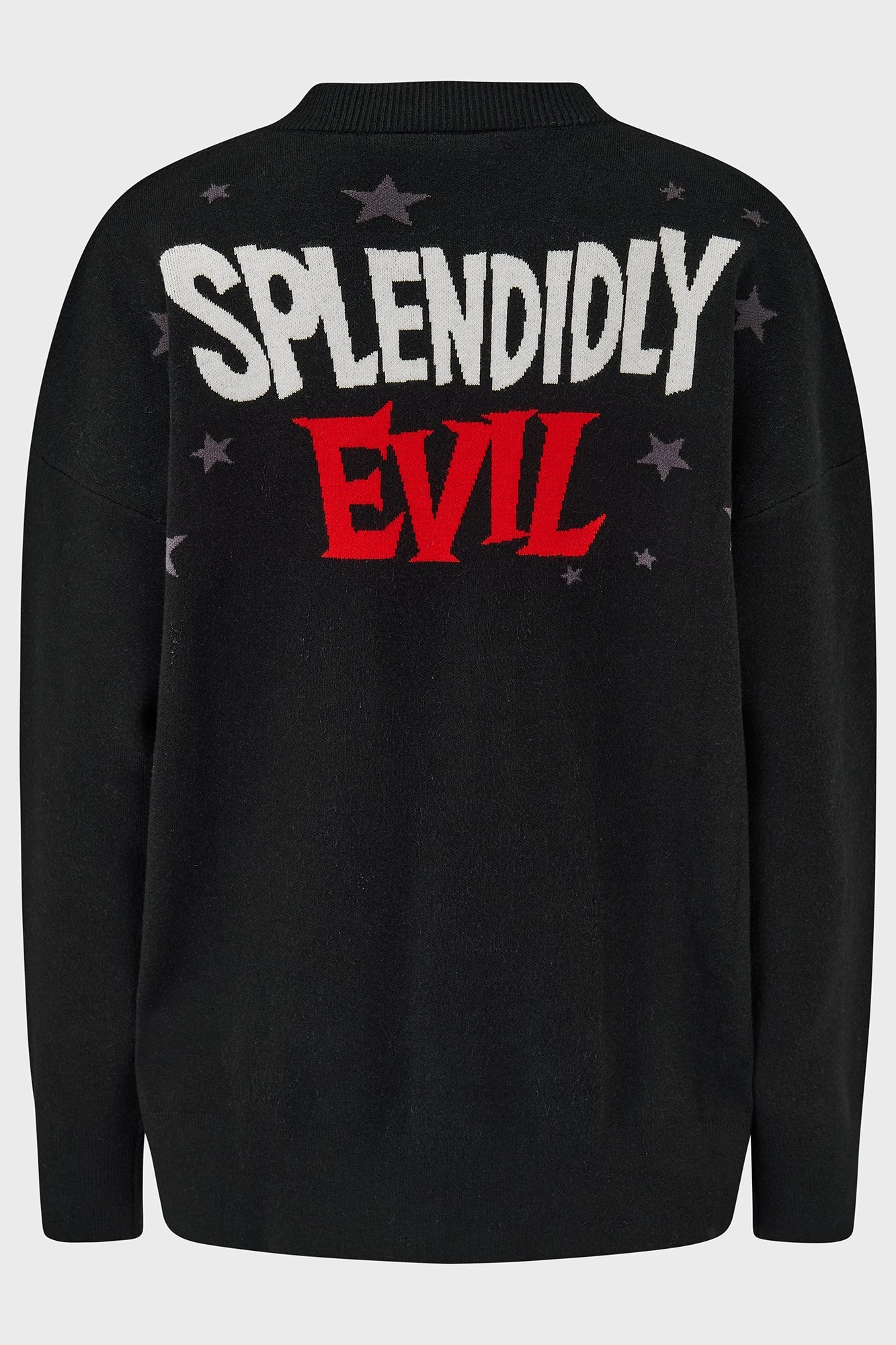 - Statement Back Design: Make an exit as memorable as your entrance with the bold ‘Splendidly Evil’ graphic across the back.