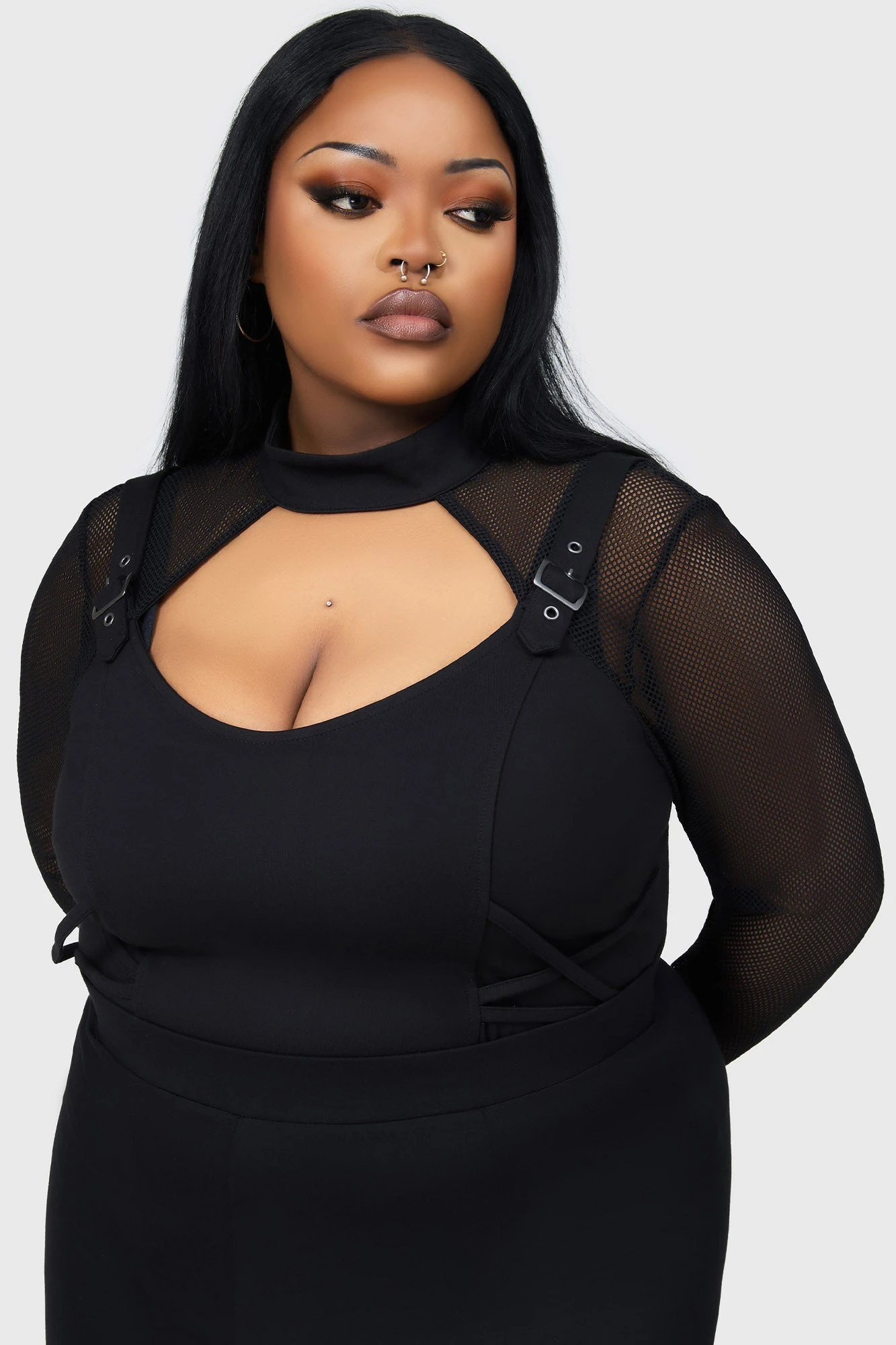 - Edgy Fishnet Detail: Long fishnet sleeves add a cyber-punk texture and breathability to your look.
