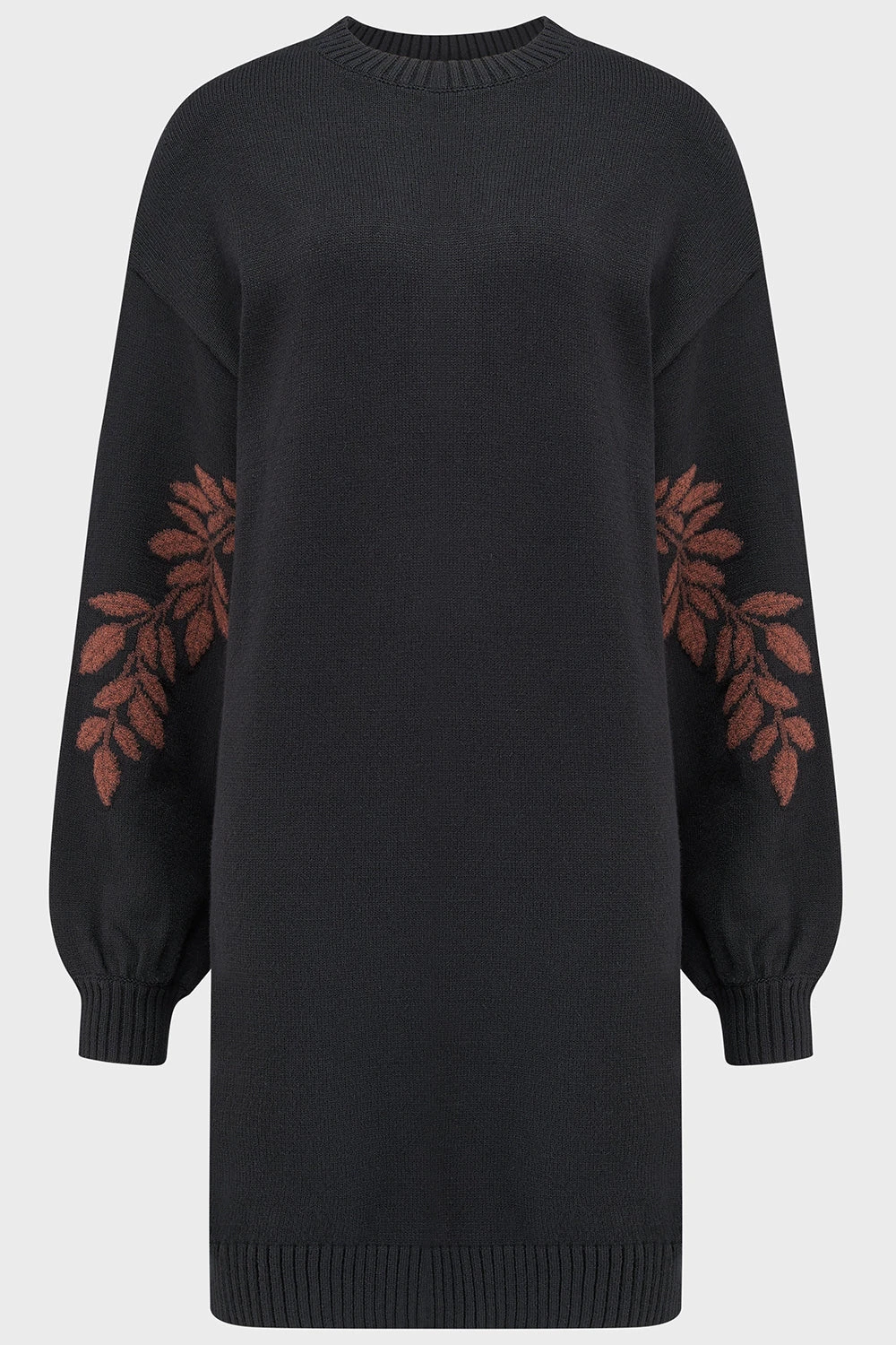 Step into the shadows with the Killstar Thornwoven Sweater Dress, a masterpiece of gothic knitwear designed in Brighton, England. Crafted from a soft, high-stretch true knit fabric, this dress combines cozy comfort with a striking silhouette. The standout feature is the intricate statement leaf design woven directly into the sleeves, offering a unique texture and visual appeal that sets you apart from the crowd.