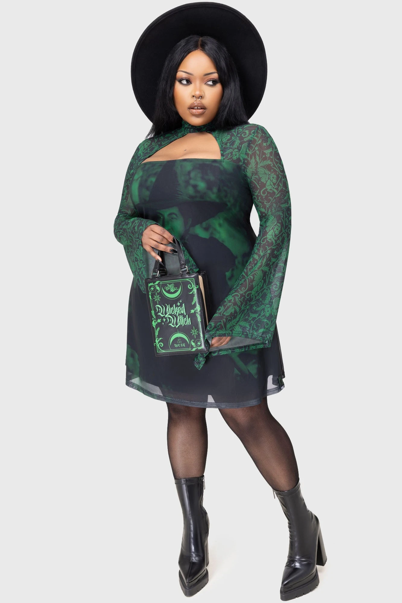 Step into the spotlight with the official Killstar x Wicked collaboration. The Truly Wicked Mini Dress is designed for those who command attention, blending alternative aesthetics with the iconic world of Wicked. Crafted from soft, breathable stretch mesh, this dress offers a flattering, fitted silhouette that moves with you, making it the ultimate statement piece for any magical or mundane occasion.