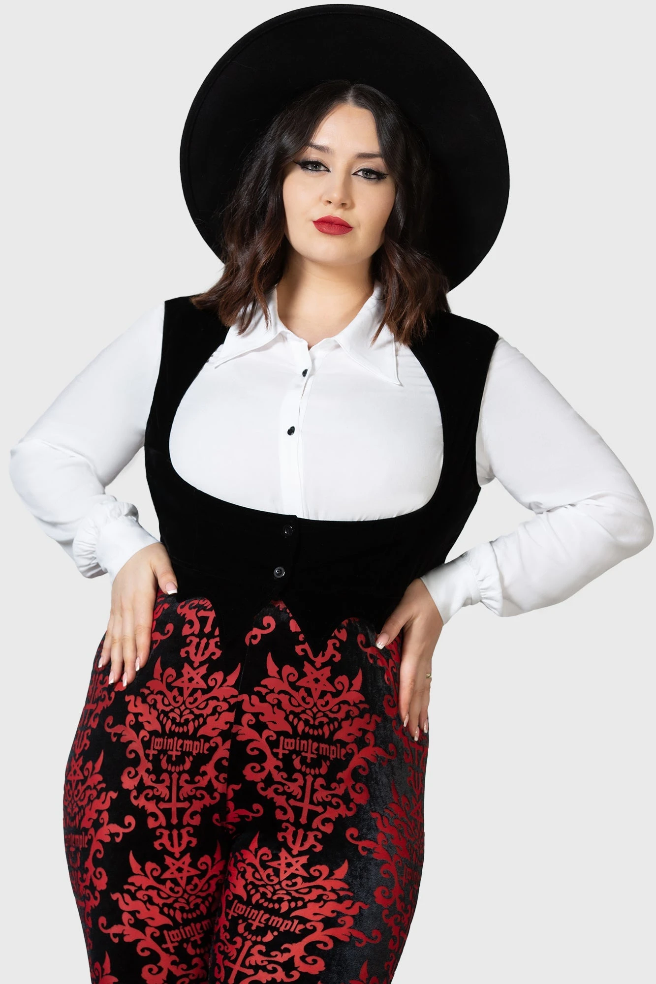 Step into the spotlight with the official KILLSTAR x Twin Temple collaboration. The Burning Bright Waistcoat is a masterpiece of dark aesthetic design, perfectly tailored for the plus-size silhouette. This licensed piece captures the ritualistic elegance of Twin Temple, making it an essential addition for those who live for alternative fashion and layering excellence.