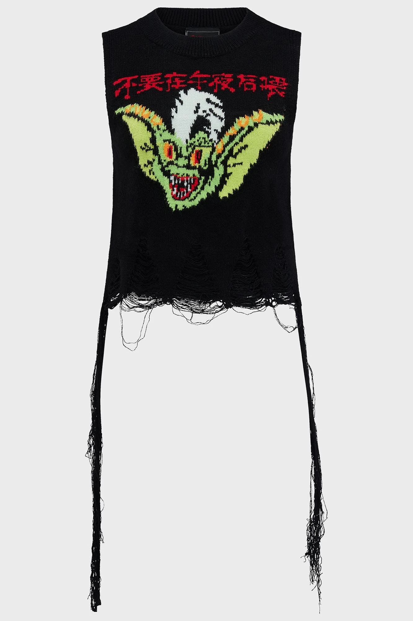 Embrace the chaos with the official KILLSTAR x Gremlins Stripe Distressed Knit Vest. This licensed collaboration merges high-quality alternative fashion with the legendary mischief of the 80s classic. Crafted from a soft, premium stretch knit, this vest features a bold Gremlins graphic and intricate embroidery, making it a standout piece for any collector or fan of the dark aesthetic.