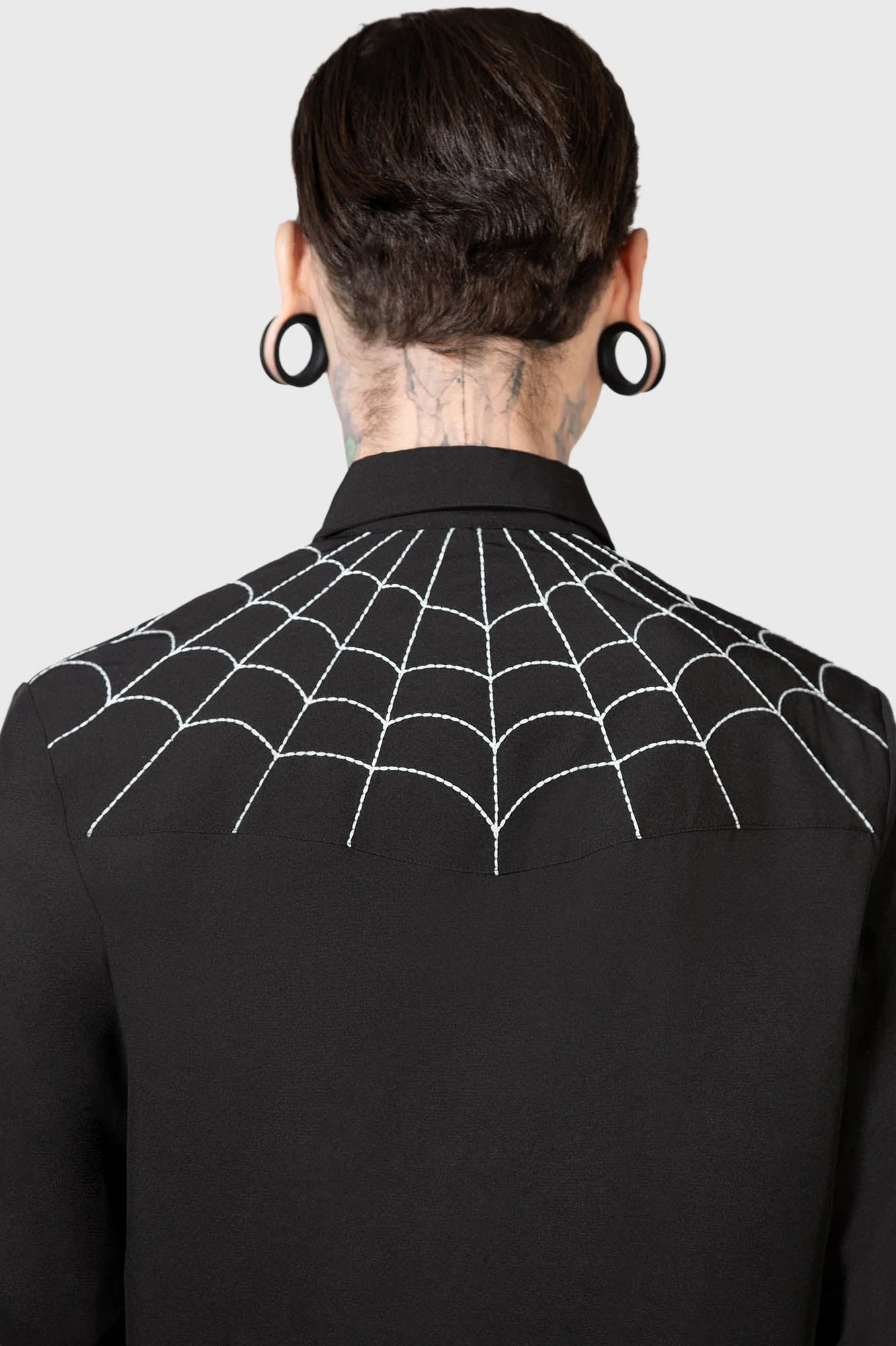 - Statement Web Embroidery: Features intricate spiderweb detailing that transforms a classic shirt into a bold fashion statement.