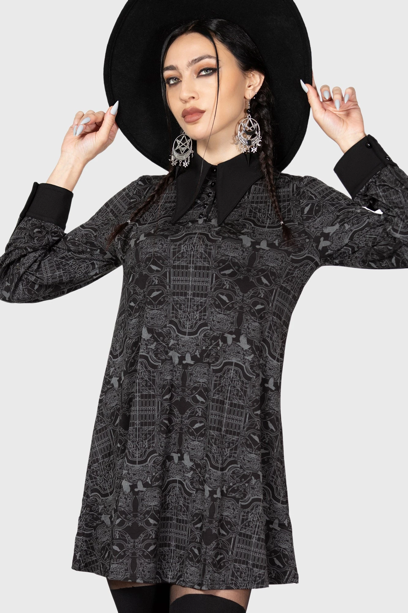 - Nevermore Inspired Print: Featuring an intricate, all-over pattern that pays homage to the iconic Nightshade Society.