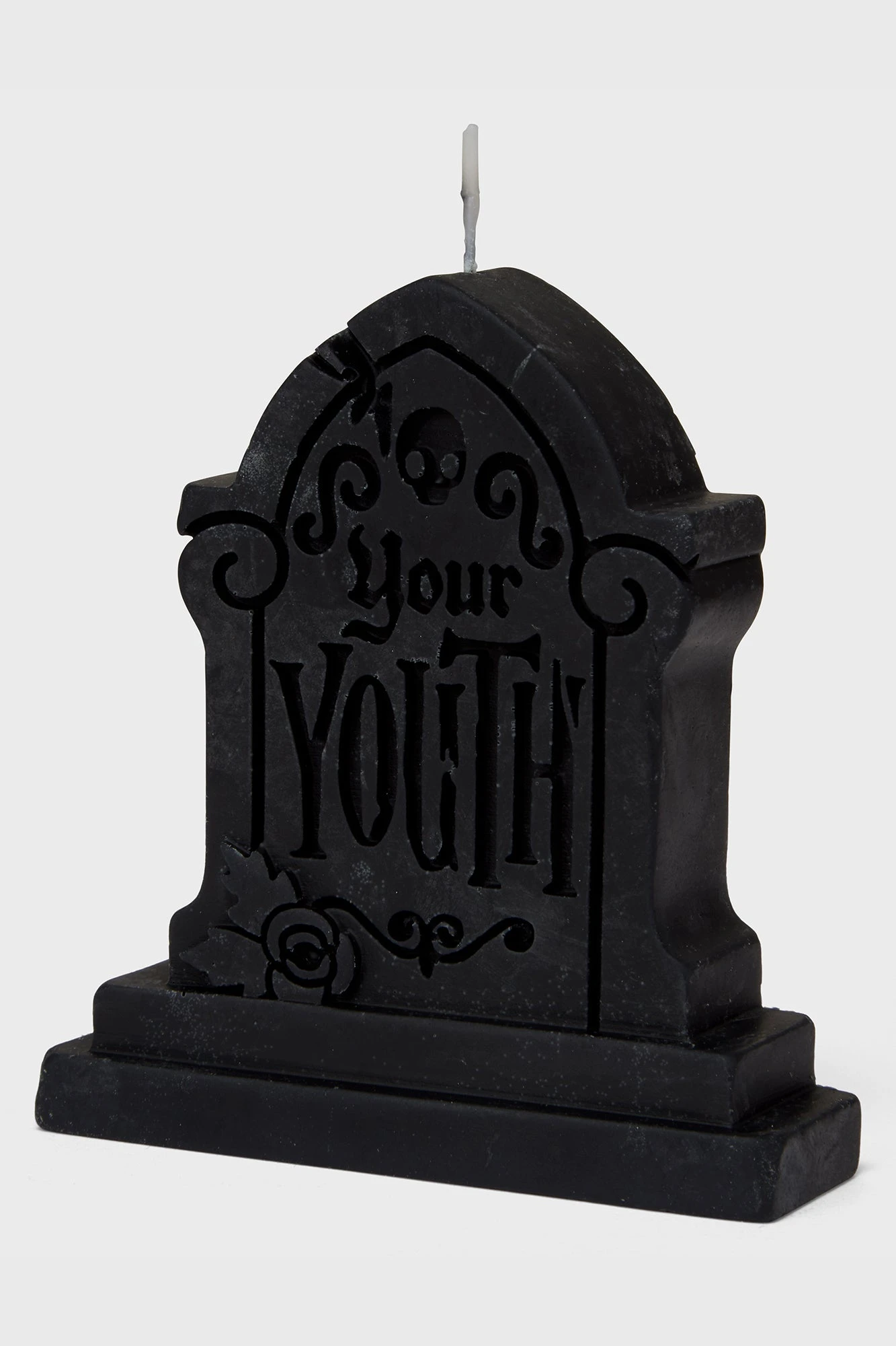Infuse your space with the rebellious spirit of KILLSTAR. The Your Youth Moulded Candle is more than just a light source; it is a bold statement piece designed to elevate your gothic home decor. Featuring a unique custom design and crafted in striking black wax, this candle serves as a centerpiece for any altar, shelf, or coffee table.