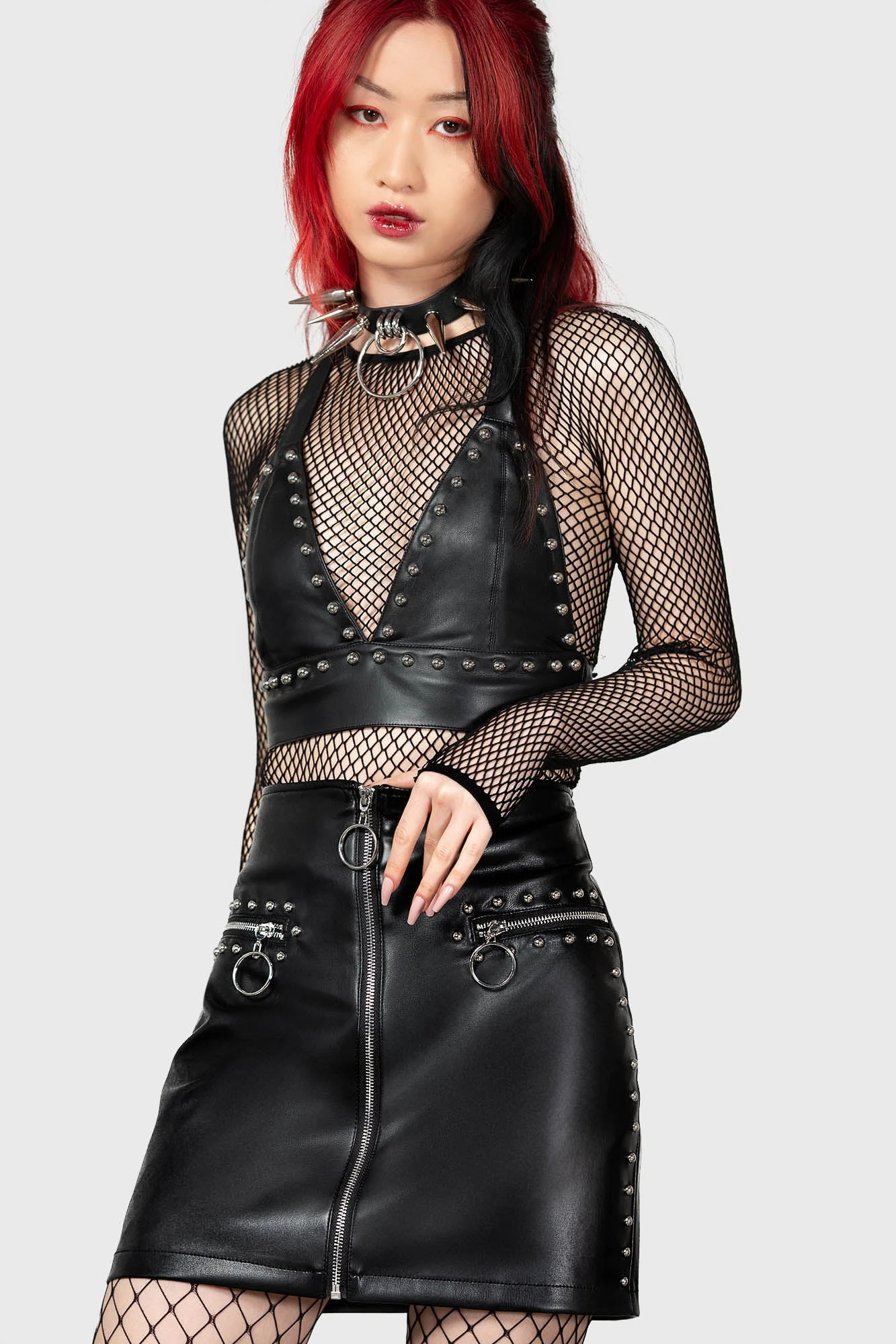 – Statement front zip closure.