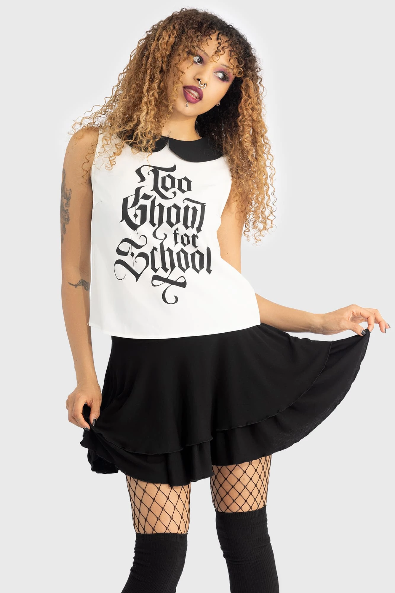 - Bold Graphic Statement: High-contrast ‘TOO GHOUL FOR SCHOOL’ text provides a standout aesthetic for your wardrobe.