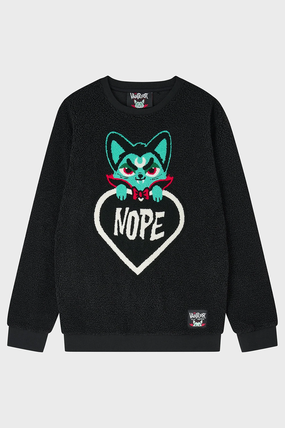 – Statement textured applique Vampurr graphic.