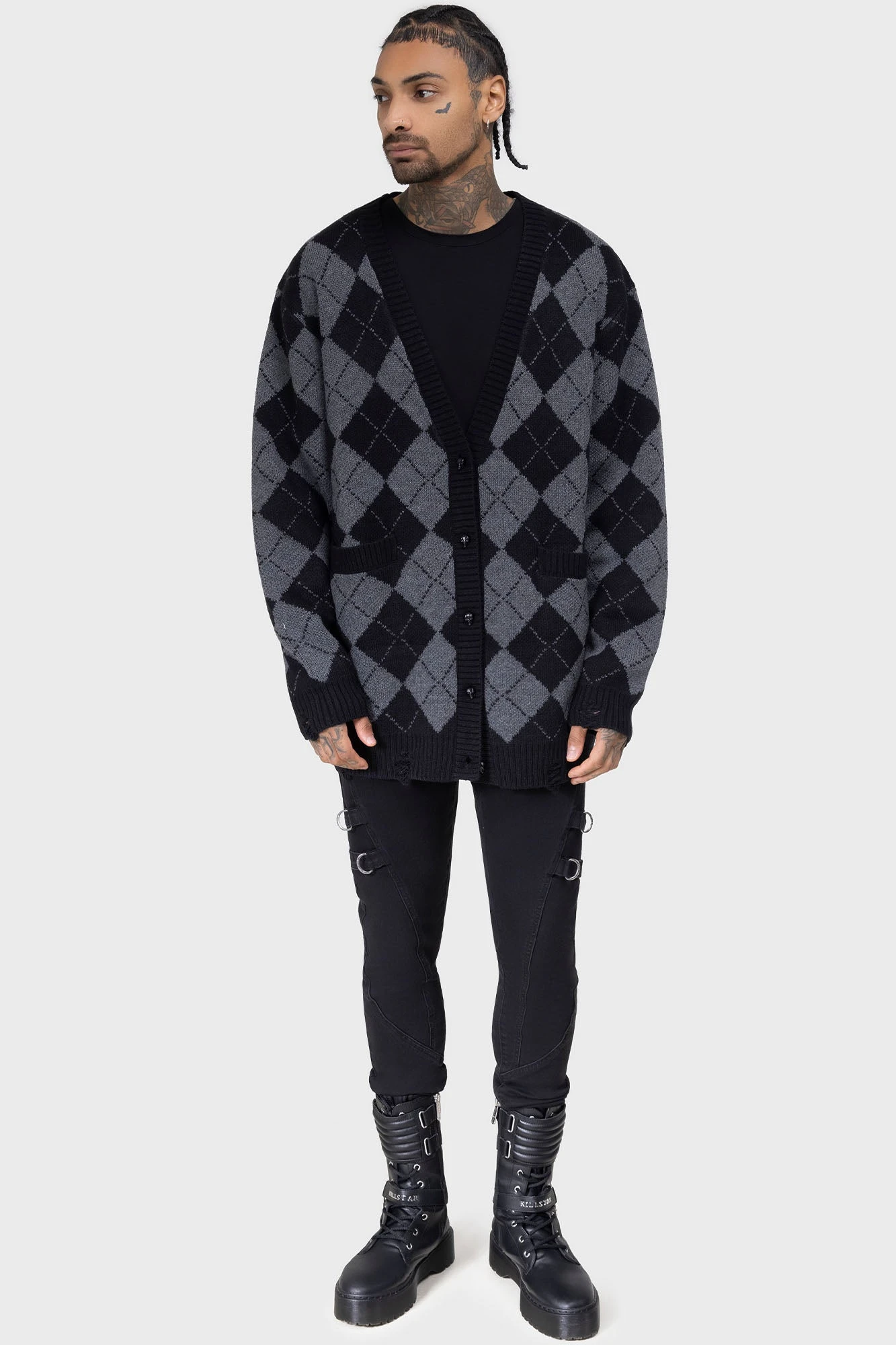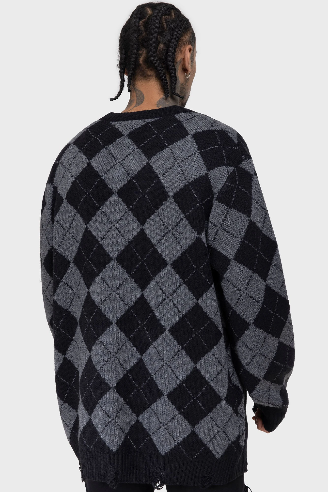 – Distressed, ribbed hem.