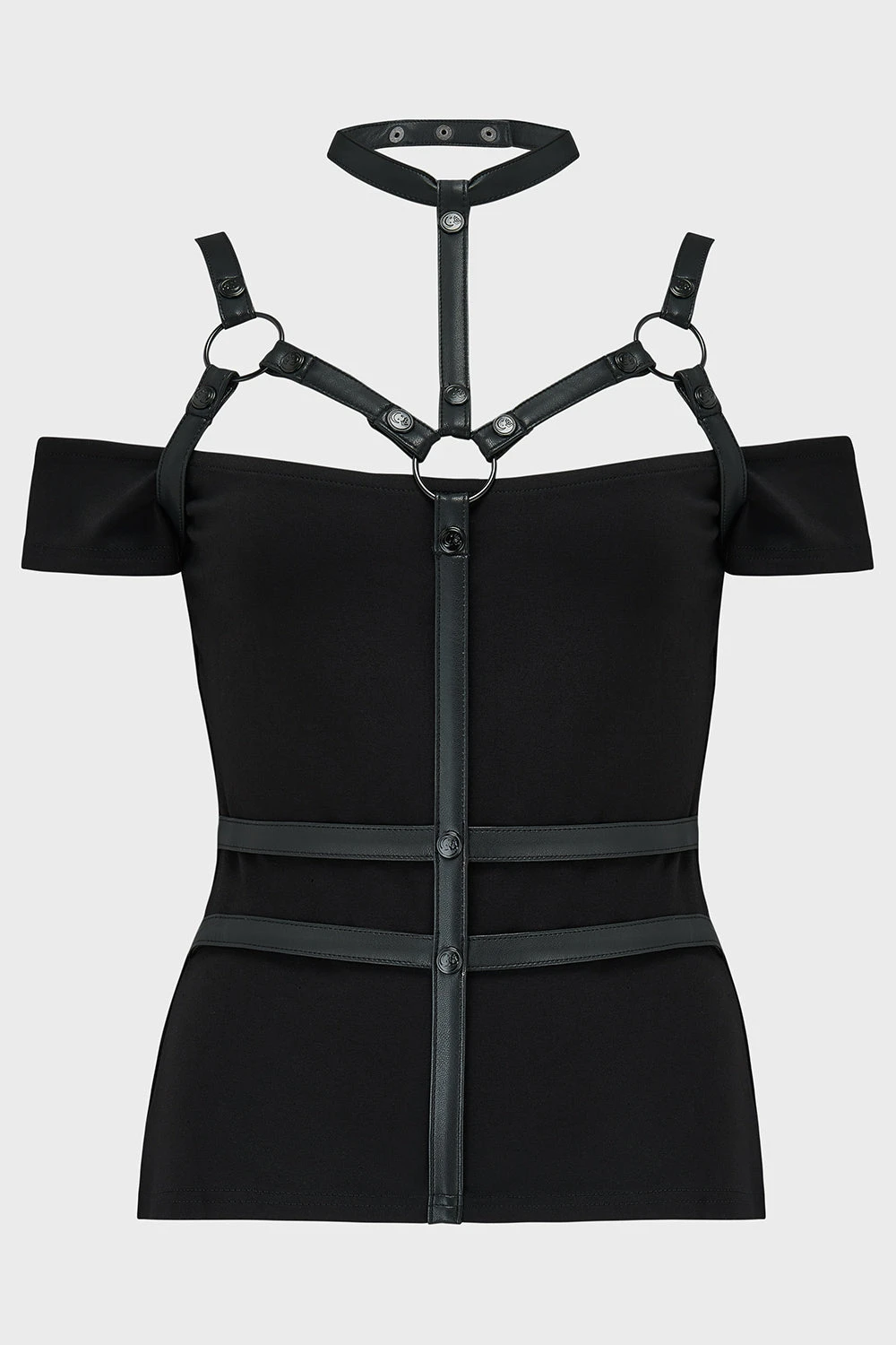 – PU crossbody decorative harness style straps with O ring and decorative.