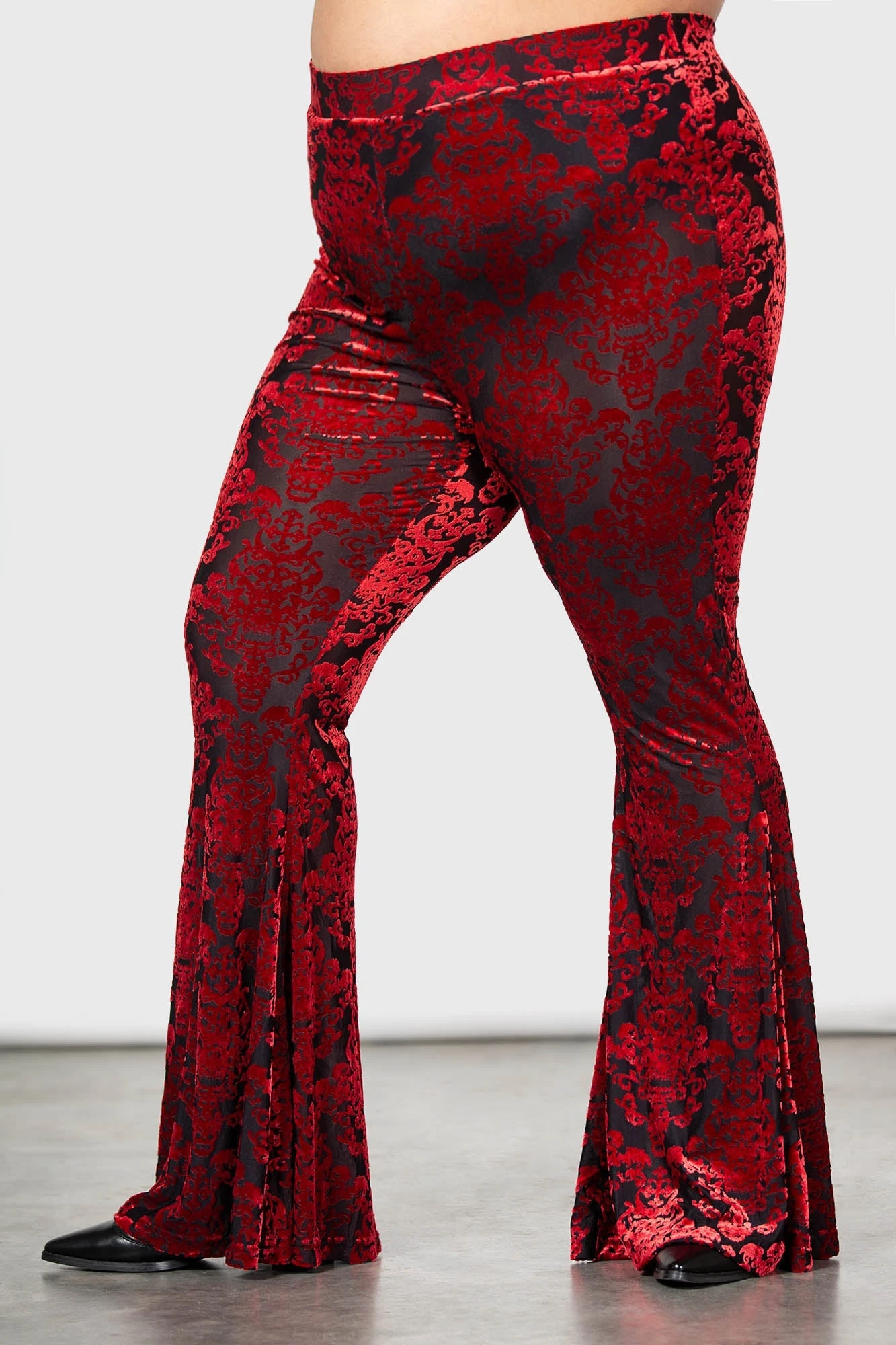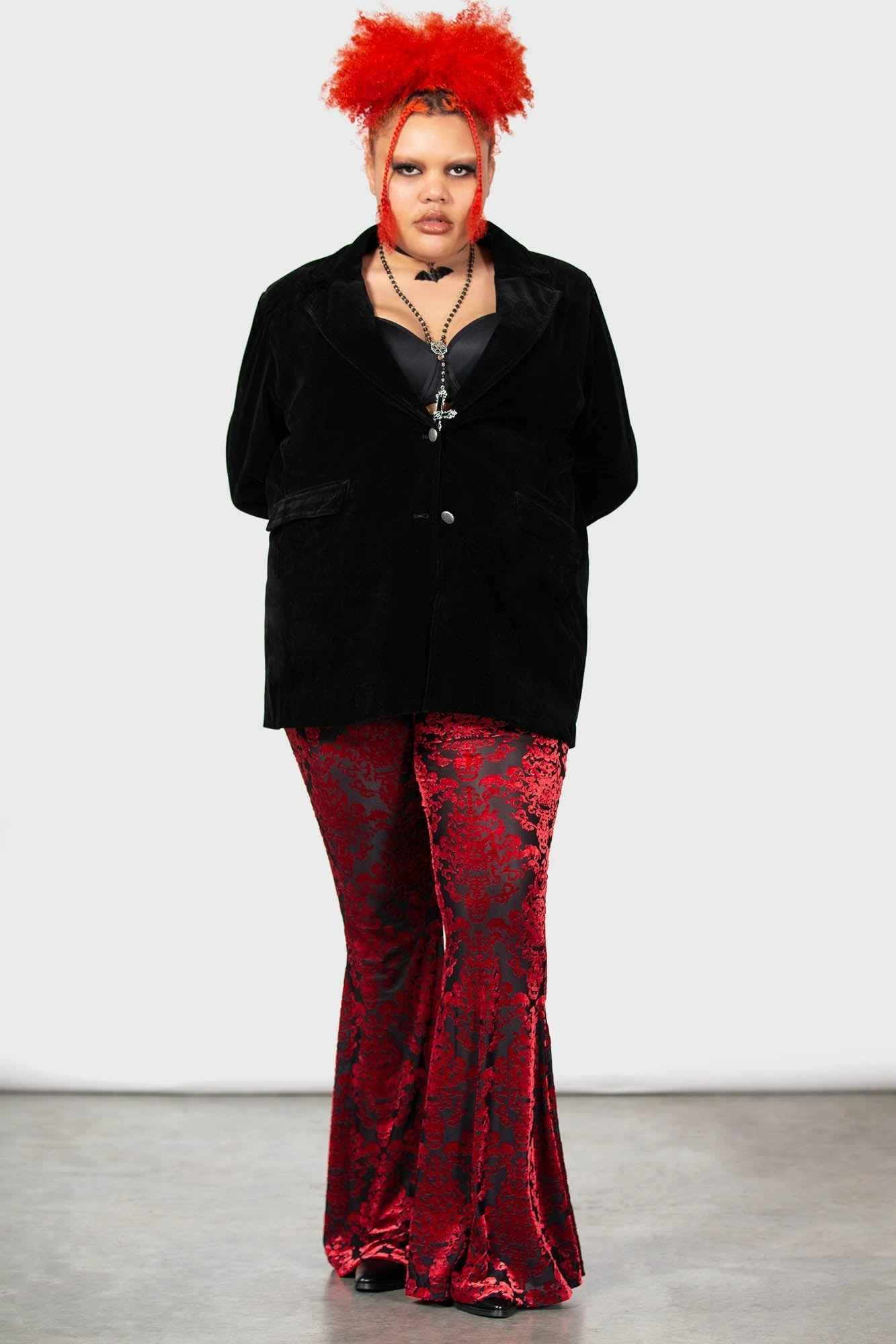 – Statement, soft stretch burnout velvet fabric.