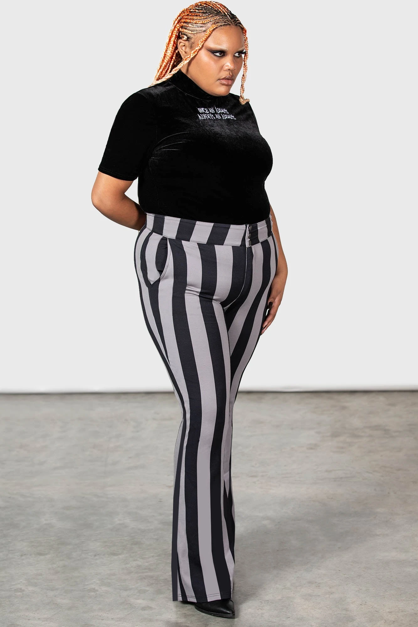 - Statement Stripe Design: The bold vertical stripes offer a timeless gothic look that elongates the legs and makes a striking impression.